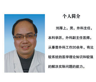 四:專家簡介外科:劉厚上,本科學歷,副主任醫(yī)師。長期從事普外科工作,有比較系統(tǒng)的醫(yī)學理論知識和較強的解決實際問題的能力,能夠處理本專業(yè)疑難病癥,目前能獨立完成肝左葉肝葉切除術(shù),胃癌、結(jié)腸癌根治,膽腸吻合、膽道成形術(shù),甲狀腺次全切除術(shù),甲狀腺癌根治術(shù),乳癌根治及改良根治術(shù)。能熟練的應(yīng)用膽道鏡取出膽管內(nèi)的結(jié)石及膽道探查術(shù)。能較熟練的應(yīng)用腹腔鏡開展膽囊切除術(shù)。對失血性休克、感染性休克、嚴重的多臟器損傷,急性出血壞死性胰腺炎進行搶救,取得了較高的成功率。曾先后在第四軍醫(yī)大學附屬二院、新疆維吾爾自治區(qū)人民醫(yī)院腹腔鏡科進修。內(nèi)科:吳毓美,內(nèi)科主任醫(yī)師。多次出席國際國內(nèi)學術(shù)會議,1971年曾參加中國援非醫(yī)療隊赴非洲工作。從醫(yī)40年,對各種內(nèi)科疾病的處理積累了豐富的經(jīng)驗,尤其擅長于呼吸內(nèi)科各種疾病如肺部感染、哮喘、肺間質(zhì)性病變、肺部腫瘤、呼吸衰竭、支氣管擴張、氣胸等病的診治。張俊元,內(nèi)科主任醫(yī)師。1964年畢業(yè)于蘇州醫(yī)學院,先后在北京醫(yī)院、武進醫(yī)院工作,為武進醫(yī)院神經(jīng)內(nèi)科創(chuàng)始人,并在任職期間將該科室創(chuàng)建為常州市重點專科。1982年開展腦脊液細胞學檢查,填補了常州市空白。1990年引進射頻溫控熱凝術(shù)治療三叉神經(jīng)痛,填補了省內(nèi)空白,已治愈三叉神經(jīng)痛患者一千余例,病人遍布華東區(qū)。撰寫省級論文19篇,完成科研三項,獲省市縣多項科技進步獎。朱龍南,內(nèi)科副主任醫(yī)師。曾任武進醫(yī)院大內(nèi)科、急診科主任。從事醫(yī)學臨床工作四十余年,對各種心血管疾病如高血壓、冠心病、糖尿病、風濕及類風濕性關(guān)節(jié)炎、胃腸疾病的診治頗有心得發(fā)表省級以上論文6篇,并撰寫急癥專著《內(nèi)科急腹癥》一部。朱輝,本科學歷,副主任醫(yī)師。1998年3月至1999年3月在四川大學華西醫(yī)院血液、內(nèi)分泌科學習。2004年3月至10月在北京大學糖尿病中心學習,獲結(jié)業(yè)證書。熟練掌握了內(nèi)分泌疾病的診療常規(guī),尤其對糖尿病的規(guī)范化治療有豐富的臨床經(jīng)驗。中醫(yī)科:李勝,本科學歷,主任中醫(yī)師。長期從事內(nèi)科醫(yī)療工作,擅長應(yīng)用中西醫(yī)治療常見病、多發(fā)病,尤其是對于慢性胃炎、慢性腸炎、急性氣管炎、慢性支氣管炎、慢性腎炎、腎病綜合癥、慢性腎衰(早期),用中西醫(yī)結(jié)合治療積累了臨床經(jīng)驗。1977年獲“南京先進工作者”稱號,2002年獲“常州市優(yōu)秀中西醫(yī)結(jié)合工作者”稱號,曾先后12次獲“院先進工作者”“新技術(shù)項目獎”。曾參加編寫醫(yī)學著作1部,發(fā)表醫(yī)學論文10余篇,其中2篇獲“常州市優(yōu)秀科技論文獎”。婦產(chǎn)科:郭雨訊,大專學歷,副主任醫(yī)師。自1979年3月開始從事婦產(chǎn)科工作,積累了豐富的臨床經(jīng)驗,能熟練掌握婦產(chǎn)科常見病和多發(fā)病的診治及婦產(chǎn)科各種手術(shù)操作技術(shù),如全子宮切除術(shù)、宮外孕手術(shù)、卵巢囊腫切除術(shù)、剖宮產(chǎn)術(shù);以及如無痛人流等婦科小手術(shù)的操作和處理。曾先后于無錫第三人民醫(yī)院、常州婦幼保健醫(yī)院婦產(chǎn)科進修學習。五官科:朱建慧,本科學歷,副主任醫(yī)師,畢業(yè)于蘇州大學臨床醫(yī)學系。從事眼耳鼻喉科工作二十多年,曾先后在江西醫(yī)學院附屬第二醫(yī)院眼科及常州市第一人民醫(yī)院眼耳鼻喉科進修,對眼耳鼻喉科的常見病、多發(fā)病的診斷和治療積累了豐富的臨床經(jīng)驗,頗受患者好評。