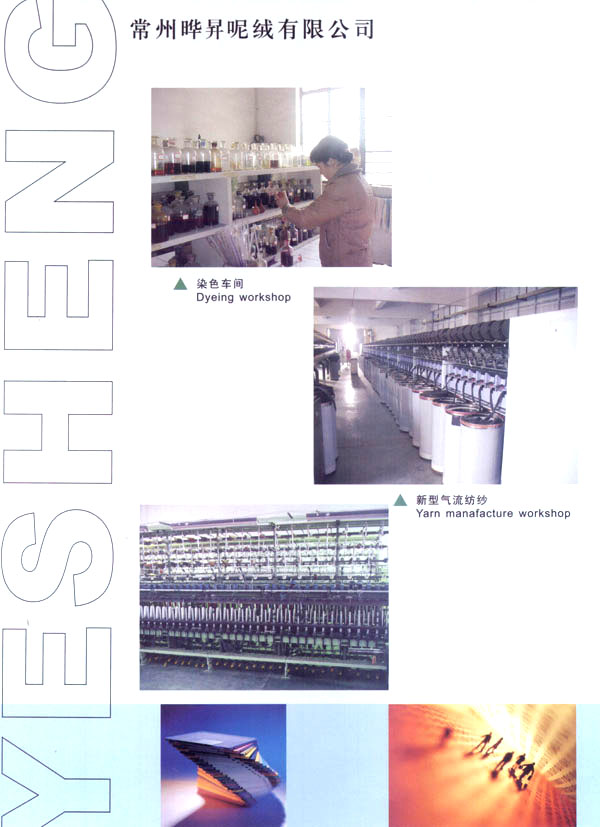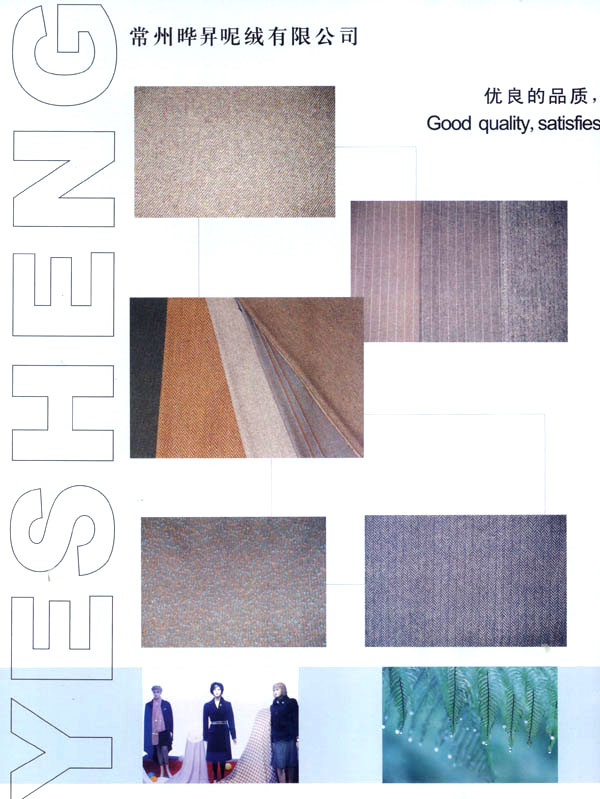 我廠成立于1999年,占地面積占60000平方米。固定資產(chǎn)有6000萬元。年銷售額達到1億元,全廠職工有600余人,技術(shù)員工超過80人,我廠主要經(jīng)營以粗毛紡為主的各式面料,以外銷為主,有一條完整的流水生產(chǎn)線,從原料一染色一紡紗一織造一后整理。我廠擁有12個染缸,日產(chǎn)量為6噸,精紡3600錠,粗紡8個臺套,劍桿織機60臺,后整理有全套精粗紡加工設(shè)備。主要產(chǎn)品有:羊絨,粗花呢,免羊毛,雙面呢,法蘭絨,精紡花呢,維羅呢,阿爾巴卡等,以及各類格子花呢。近年來本企業(yè)利用地區(qū)優(yōu)勢勢力開發(fā)新品,在原有的基礎(chǔ)上開發(fā)出各種備受親睞的花式呢料。如格子花呢,緞染花呢,粗毛絨呢,提花呢,并于2000年通過ISO9002認證。本廠產(chǎn)品主要銷往歐洲,日本,韓國,法國,加拿大,美國,歡迎廣大客戶前來垂詢合作。本廠有志與世界的品牌建立良好的合作關(guān)系。