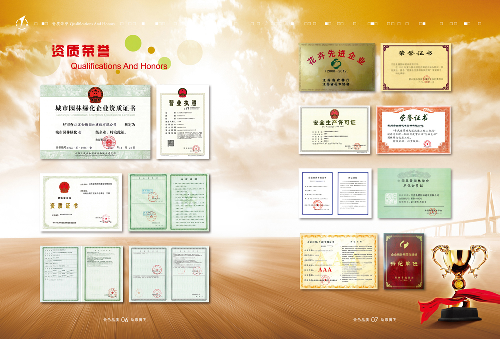 公司以園林綠化工程、市政公用工程、古建筑施工及景觀設(shè)計為主要業(yè)務的綜合性公司。并具備園林綠化一級、市政公用二級、鋼結(jié)構(gòu)三級、古建筑三級、房屋建筑工程施工總承包三級和城市及道路照明工程專業(yè)承包三級資質(zhì)企業(yè)。公司組織機構(gòu)健全、管理制度完善,具備獨特的經(jīng)營理念和服務精神。公司技術(shù)力量雄厚,機械設(shè)備齊全。公司已取得AAA級資信等級、重合同守信用企業(yè),通過ISO9001國際認證體系并取得證書。目前我公司自主培育苗圃1000余畝,常年生產(chǎn)各種常綠、落葉喬木,花灌木、各類盆景、草坪、地被等植物百余種,年產(chǎn)各類苗木250萬株,盆花130萬盆,暢銷省內(nèi)外各地。