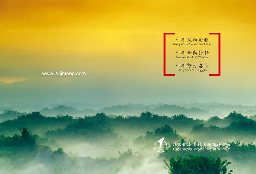 走過十年的風雨歷程,經(jīng)過十年的辛勤耕耘,付出十年的努力奮斗,企業(yè)的規(guī)模不斷擴大,公司堅持以人為本,遵守“誠信、規(guī)范、團結(jié)、奮斗”的宗旨。公司將用優(yōu)秀的品質(zhì)服務來回報關(guān)愛公司成長的社會各界人士。江蘇金騰園林建設(shè)有限公司愿攜手社會各界有識之士共創(chuàng)造美好的未來!