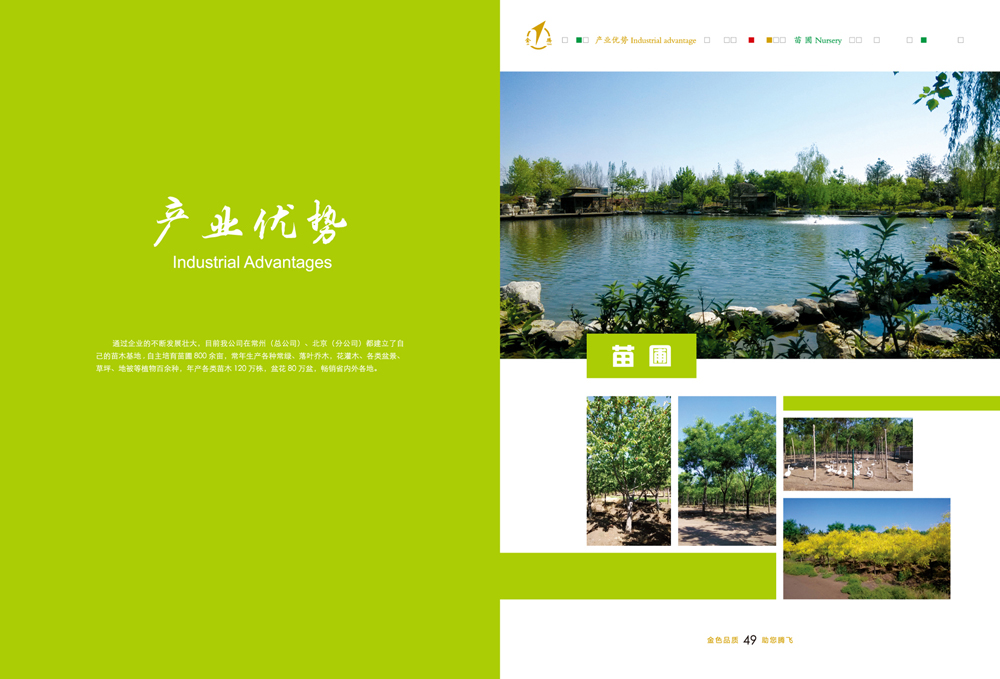 公司以園林綠化工程、市政公用工程、古建筑施工及景觀設(shè)計(jì)為主要業(yè)務(wù)的綜合性公司。并具備園林綠化一級、市政公用二級、鋼結(jié)構(gòu)三級、古建筑三級、房屋建筑工程施工總承包三級和城市及道路照明工程專業(yè)承包三級資質(zhì)企業(yè)。公司組織機(jī)構(gòu)健全、管理制度完善,具備獨(dú)特的經(jīng)營理念和服務(wù)精神。公司技術(shù)力量雄厚,機(jī)械設(shè)備齊全。公司已取得AAA級資信等級、重合同守信用企業(yè),通過ISO9001國際認(rèn)證體系并取得證書。目前我公司自主培育苗圃1000余畝,常年生產(chǎn)各種常綠、落葉喬木,花灌木、各類盆景、草坪、地被等植物百余種,年產(chǎn)各類苗木250萬株,盆花130萬盆,暢銷省內(nèi)外各地。