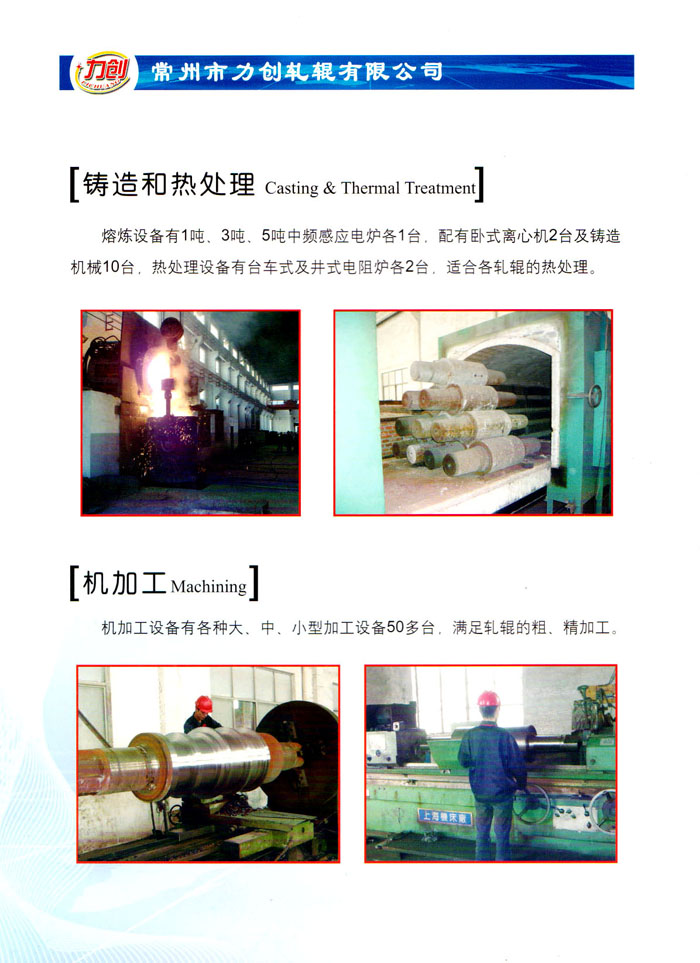 常州市力創(chuàng)軋輥有限公司(原名常州市力創(chuàng)軋廠, 創(chuàng)建于2000年),本公司專業(yè)生產(chǎn)鑄鋼軋輥、鑄鐵軋輥及鑄鋼堆焊的服務(wù),生產(chǎn)經(jīng)驗(yàn)豐富,技術(shù)力量強(qiáng)大,鑄造能力雄厚。 公司主導(dǎo)產(chǎn)品各類優(yōu)質(zhì)軋輥是集冶煉、鑄造、熱處理及機(jī)加工為一體的高科技含量產(chǎn)品,其生產(chǎn)工藝裝備先進(jìn),檢測(cè)設(shè)備完善,經(jīng)過技術(shù)中心的研發(fā),建成整體鑄鐵鑄鋼軋輥,離心復(fù)合鑄鐵軋輥等優(yōu)質(zhì)軋輥生產(chǎn)線,生產(chǎn)多系列多材質(zhì)多規(guī)格的軋輥及輥環(huán),產(chǎn)品暢銷80多家國(guó)內(nèi)鋼鐵企業(yè),各項(xiàng)技術(shù)指標(biāo)均滿足客戶使用要求,得到用戶充分肯定,具有強(qiáng)勁的競(jìng)爭(zhēng)實(shí)力。 我公司連續(xù)多年被評(píng)為明星企業(yè),文明單位,重合同守信用企業(yè),并通過ISO9001:2008最新質(zhì)量體系認(rèn)證。 我公司堅(jiān)持以“質(zhì)量至上,誠信為本”為宗旨,熱忱歡迎新老客戶洽談合作,竭誠為廣大客戶提供優(yōu)質(zhì)產(chǎn)品和良好服務(wù)。