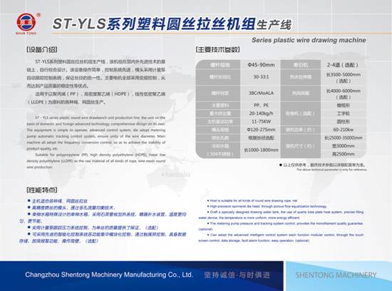 常州神通機(jī)械制造有限公司位于滆湖之盼,依托常州市武進(jìn)區(qū)優(yōu)越的地理環(huán)境,公司創(chuàng)建于1992年,是專業(yè)生產(chǎn)塑料機(jī)械拉絲機(jī)成套設(shè)備的企業(yè)。 神通公司經(jīng)過30年多來的艱辛創(chuàng)業(yè),在塑料機(jī)械行業(yè)中積累了豐富的經(jīng)驗(yàn),為擴(kuò)大生產(chǎn)能力,提升產(chǎn)品質(zhì)量,新組建了一個(gè)技術(shù)緊密合作型企業(yè),并具有獨(dú)立法人資質(zhì),即為宜興順通機(jī)械制造有限公司。我們會(huì)一如既往地努力,堅(jiān)持走“順通”的品牌之路,愿與各位同行攜手共創(chuàng)未來,為塑料機(jī)械行業(yè)的發(fā)展作出貢獻(xiàn)。 神通公司擁有標(biāo)準(zhǔn)廠房共計(jì)15000m²,現(xiàn)有先進(jìn)的三軸、四軸聯(lián)動(dòng)的加工中心,數(shù)控鉆床、銑床、車床、外圓磨床、剪板機(jī)、折彎?rùn)C(jī)等高精度加工設(shè)備。 神通公司以精湛的生產(chǎn)工藝、完善的管理體系和滿意的售后服務(wù),得到新老用戶的信賴。設(shè)備外形美觀、結(jié)構(gòu)合理、性能安全可靠、具有先進(jìn)的控制系統(tǒng)等優(yōu)點(diǎn),物美價(jià)優(yōu),得到新老用戶的一致好評(píng)。 神通公司對(duì)產(chǎn)品質(zhì)量要求是:從原材料采購(gòu)到成品出廠,均執(zhí)行品質(zhì)控制。 神通公司堅(jiān)持“以人為本、誠(chéng)信經(jīng)營(yíng)、科技興業(yè)、精益求精、以質(zhì)取勝、合作共贏”的經(jīng)營(yíng)理念!耙再|(zhì)量求生存,以創(chuàng)新求發(fā)展”的企業(yè)精神。 主營(yíng)業(yè)務(wù): 1.雙色人造草坪?jiǎn)谓z、雙色人造草坪曲絲一步法、人造草坪開網(wǎng)絲拉絲成套生產(chǎn)線設(shè)備系列,及草坪絲一步法捆綁收卷機(jī)、一步法捻線機(jī)、絡(luò)筒機(jī)。 2.PE、 PP、 PA、PET圓絲、工業(yè)單絲等拉絲成套生產(chǎn)線設(shè)備系列。 3.集裝袋、編織袋、土工布、PP基布、遮陽網(wǎng)、捆草網(wǎng)、蓋土網(wǎng)等平膜扁絲拉絲機(jī)成套生產(chǎn)線設(shè)備系列。 4.電纜填充網(wǎng)狀絲、PP縱向拉伸膜、PE壓花膜成套生產(chǎn)線設(shè)備系列,及各種特殊規(guī)格的電纜填充繩收卷機(jī)等電纜材料輔助設(shè)備5.高低壓PP,PE吹膜機(jī)及撕裂膜、捆扎帶生產(chǎn)線設(shè)備系列。 6.塑料回收造粒機(jī)組、邊絲回收裝置及粉碎機(jī)等。 7.圈、扁絲磁性收卷機(jī)、變頻無刷電機(jī)收卷機(jī),圓絲工字盤、橄欖形、寶塔形收卷機(jī)及浸膠線專用收卷機(jī)。 8.舊塑料拉絲機(jī)設(shè)備改造、可定做特殊規(guī)格的圓、扁絲帶捻度專用收卷機(jī)、繩網(wǎng)絡(luò)筒機(jī)及其它收卷機(jī)。