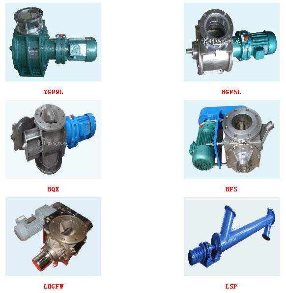 公司生產(chǎn)的關(guān)風(fēng)機(jī)、旋轉(zhuǎn)閥、星型裝卸料裝置、螺旋輸送機(jī),共有TGF、ZGF、ZGFW、ZGFWE、ZGFWF等十多種機(jī)型,五十多種規(guī)格,百余種參數(shù),制造材質(zhì)有鑄鐵、碳鋼、不銹鋼等,可滿足不同介質(zhì)、不同工況的要求。產(chǎn)品廣泛應(yīng)用于糧油、食品、飼料、化工、制藥、干燥、除塵等行業(yè)。