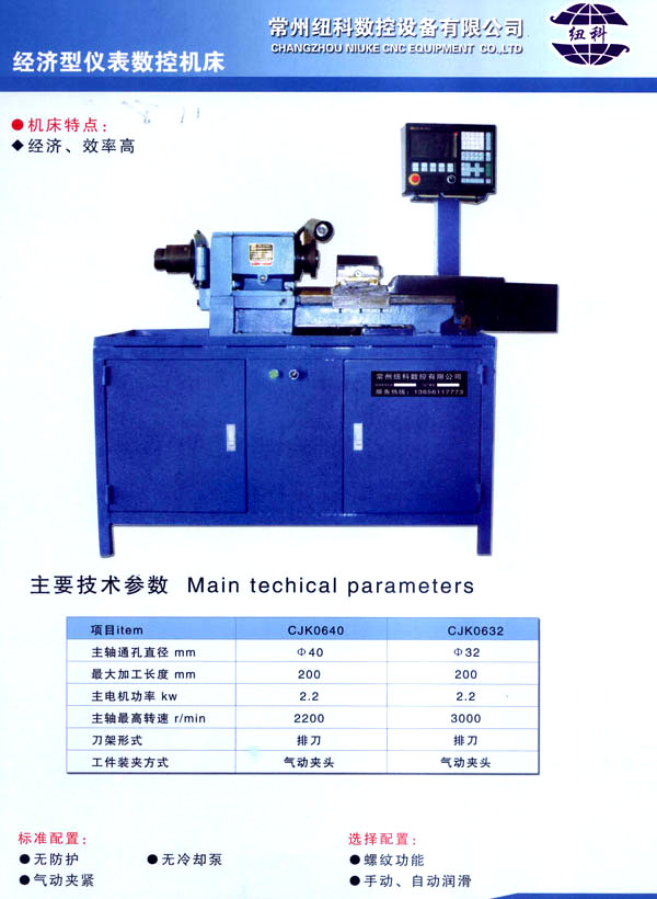 我公司目前主要產(chǎn)品有:C~CJK61 80。C~CJK61 63,CK/C,.IK61 50,CK/C。IK61 40,C~CJK61 32,CK/CJK6432,C~CJK0640,C~CJK0632及CK一32/40斜導(dǎo)軌數(shù)控機(jī)床,公司產(chǎn)品不僅可以滿(mǎn)足各企業(yè)產(chǎn)品的批量加工,更是高等院校,中專(zhuān),技校,職校相關(guān)專(zhuān)業(yè)數(shù)控技術(shù)實(shí)習(xí)教學(xué)和綜合實(shí)驗(yàn)的理想設(shè)備。