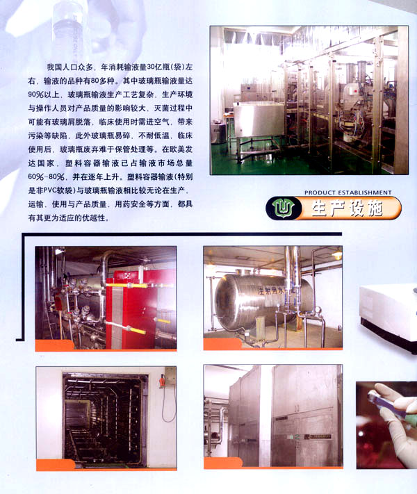 江蘇通用藥業(yè)有限公司,系于2001年投資建成的年產(chǎn)2000萬(wàn)瓶大容量注射劑生產(chǎn)企業(yè),公司于當(dāng)年12月即順利通過了國(guó)家藥監(jiān)局GMP認(rèn)證。為了提升產(chǎn)品檔次,滿足多層次市場(chǎng)需求,公司又于2004年投資建設(shè)1000萬(wàn)袋/年軟袋輸液生產(chǎn)線,目前已全線投產(chǎn)。