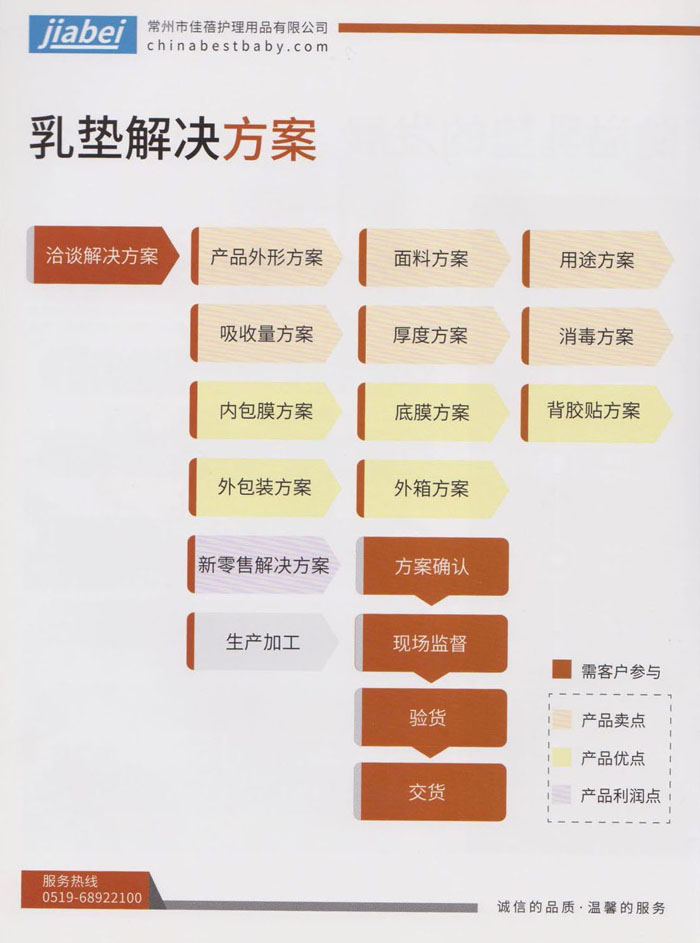 常州市佳蓓護(hù)理用品有限公司是一家專業(yè)從事開(kāi)發(fā)、生產(chǎn)、銷售并具備自營(yíng)出口的外向型企業(yè),主要生產(chǎn)“一次性防溢乳墊“,以質(zhì)量穩(wěn)定,柔軟親膚而深受客戶和消費(fèi)者青睞。本公司產(chǎn)品從生產(chǎn)到包裝成品嚴(yán)格執(zhí)行無(wú)菌生產(chǎn)標(biāo)準(zhǔn)化流程,并和設(shè)備生產(chǎn)廠家合作開(kāi)發(fā)了兩條從進(jìn)料、生產(chǎn)、檢測(cè)、滅菌、成品包裝的無(wú)菌生產(chǎn)線,從而實(shí)現(xiàn)了真正意義上的無(wú)菌生產(chǎn)標(biāo)準(zhǔn)化。