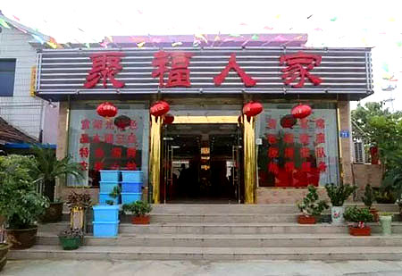 口福 一手的新鮮食材 聚福人家的老板張玉良是土生土長的太滆人,從小就跟隨父母的漁船在太湖上搖曳長大。憑著對太湖水產(chǎn)的熟識與一番鄉(xiāng)戀,他畢業(yè)后留在了這里,進(jìn)入了常州水產(chǎn)公司太滆銀魚分公司,繼續(xù)與這里的魚魚蝦蝦打交道。多年的矜矜業(yè)業(yè),他漸漸對太滆的漁業(yè)熟門熟路,于是便離開水產(chǎn)公司,自己開始做起了水產(chǎn)生意,10艘大漁船一年四季為其供應(yīng)最新鮮的魚蝦,有一手的新鮮貨源做后盾,他萌生開飯店的想法。 2008年,聚福人家的前身聚福樓飯店開張了。8年來,張玉良始終堅(jiān)持親自為飯店挑選新鮮的食材,顧客吃得開心、吃得健康,他就放心了。 聚福人家的菜品不僅食材新鮮,而且豐富多樣,味道一流。讓家鄉(xiāng)的味道走出去,讓外面的味道走進(jìn)來