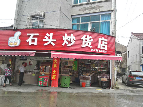 湖塘花東街上的“石頭炒貨店”是20多年的老字號(hào)了。上個(gè)世紀(jì)90年代,二十郎當(dāng)歲的“石頭”一一石愛軍從徐州來到武進(jìn),就在這條街上擺了個(gè)炒貨攤。“幾平方米的小地?cái),邊上架個(gè)大鐵鍋,炒出的瓜子、花生、蠶豆,鋪在竹篾上篩過、冷卻后就可以賣了!笔瘣圮娀貞洠址秽徖锩爸盏膰(yán)寒,擠在地?cái)偳皣L著剛出鍋的瓜子的場(chǎng)景,還歷歷在目。20多年過去了,鄰居們都成了最熟悉的親人,從年輕姑娘到抱著孫子的老人,大家還是最愛吃石頭炒的瓜子。而炒貨店的店面也擴(kuò)大了,并且在湖塘另開了多家分店。 生意最好的還是花東街上的老店。不大的店面,被一袋袋瓜子、花生、蠶豆、核桃堆得滿滿的,空氣里也滿滿都是堅(jiān)果的香氣。超大瓜子唇齒留香,去皮瓜子鮮香入昧,南瓜子皮薄肉厚,還有開心果、手剝松子、小油果、核桃、碧根果、小黃豆,以及炒米糕、蛋卷、麻松條、紫薯干、地瓜干、山芋片、鍋巴、芝麻糖、山楂、麻花、葡萄干….這么多美昧都是老板親手制作。愛吃點(diǎn)什么,就用一 長柄勺鏟點(diǎn)兒什么,最質(zhì)樸簡單的包裝袋里,裝著的是屬于這條老街居民記憶里的味道,穿過幾十年的時(shí)光,仍然鮮活生動(dòng)地銘刻在每一個(gè)人的里。 “少東家”石榮沖就是在這個(gè)老店、這條老街長大的。他說目前自己炒瓜子的技藝還沒到火候,還在跟著父親學(xué)習(xí)的階段!碧暨x原料、炒制工序,每一步都有學(xué)問在里頭。”拿店內(nèi)的銷售冠軍“內(nèi)蒙大瓜子”來說,這種來自內(nèi)蒙、經(jīng)過充足日照的葵花子每顆長度近2厘米,個(gè)頭特別大,也十分飽滿。拈一顆大瓜子,就連嗑起來的聲音也分外清脆。外皮很容易與內(nèi)仁剝離,碩大的瓜子仁口感十分香脆,與別家作料用得很足、吃起來特別鮮咸的瓜子不同,這種大瓜子更注重烘托原昧,淡淡的咸昧在舌尖掠過,剩余的都是屬于瓜子的天然香甜。