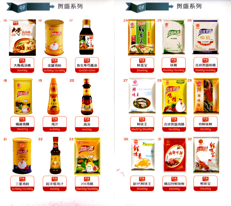 公司占地面積23500平方米,花園式工廠、廠房面積18500平方米,員工330余名,其中擁有中、高級職稱管理和技術(shù)人員58名,生產(chǎn)場地均按食品和藥品GMP要求設(shè)計(jì)、全封閉車間、中央空調(diào)系統(tǒng)、閉路電視監(jiān)控系統(tǒng)。已建成成三條雞精,雞粉生產(chǎn)線。一條雞汁生產(chǎn)線。一條鮮味汁生產(chǎn)線。一條醬汁精膏類生產(chǎn)線,規(guī)劃年生產(chǎn)能力達(dá)30000噸。 "賀盛"品牌取自《詩·大雅·下武》中"受天之祜、 四方來賀";《易經(jīng)》中"富有謂之大業(yè),日新之謂盛德",賀盛企業(yè)師法源遠(yuǎn)流長中華飲食文化,融匯中西健康美食調(diào)味。相繼研發(fā)生產(chǎn)出高品質(zhì)的"賀盛牌"味精、雞精、雞粉、雞汁、湯王、鮑魚醬王、鮮味汁調(diào)味素和各種風(fēng)味熱反應(yīng)精膏等系列產(chǎn)品。二十年來"賀盛"產(chǎn)品質(zhì)量獲得廚藝界專業(yè)人士和消費(fèi)者的一致好評和高度認(rèn)可。 賀盛企業(yè)和產(chǎn)品相繼榮獲1995年"首界中國國際食品博覽會金獎",2001年企業(yè)通過ISO-9001國際質(zhì)量體系認(rèn)證,2003年江蘇省"計(jì)量保證確認(rèn)單位",2004年獲得自營出口權(quán),2005年賀盛雞精榮獲"江蘇名牌產(chǎn)品",2006年賀盛商標(biāo)被評為"江蘇省著名商標(biāo)",2007年通過HACCP認(rèn)證,全部產(chǎn)品均通過QS食品安全認(rèn)證,并積極努力爭創(chuàng)中國名牌,中國馳名商標(biāo)。 公司銷售網(wǎng)點(diǎn)建設(shè)發(fā)展迅速,相繼組建上海、南京、河南、海南、新疆全資分公司;辦事處、經(jīng)銷商覆蓋全國,并出口日本、香港及東南亞地區(qū)。二十年來,在公司總裁周國林先生帶領(lǐng)下,全體同仁秉承"厚德載物、自強(qiáng)不息"宗旨,發(fā)揚(yáng)"以人為本、科技創(chuàng)新、自我加壓、爭創(chuàng)一流"的企求精神;致力于傳承中華飲食文化,融化西方美食精粹,不斷的研發(fā)、創(chuàng)新,奉獻(xiàn)更多更好的調(diào)味料,讓生活更有滋味。