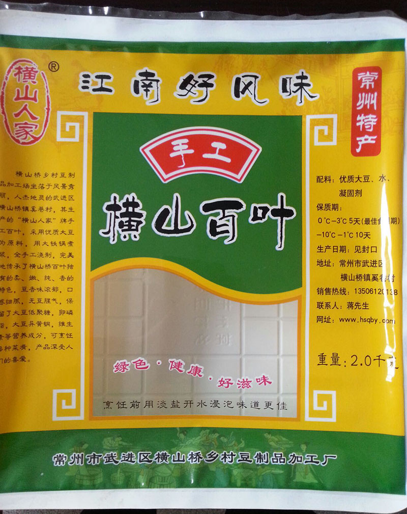 橫山橋鄉(xiāng)村豆制品加工場坐落于風(fēng)景秀麗,人杰地靈的武進(jìn)區(qū)橫山橋鎮(zhèn)奚巷村,其生產(chǎn)的“橫山人家”牌手工百葉,采用優(yōu)質(zhì)大豆為原料,用大鐵鍋煮漿,全手工澆制,完美地傳承了橫山橋百葉獨(dú)有的柔、嫩、純、香的特色,豆香味濃郁,口感細(xì)膩,無豆腥氣,保留了大豆低聚糖,卵磷脂,大豆異黃銅,維生素等營養(yǎng)成分,可烹飪多種菜肴。產(chǎn)品主要銷往上海、南京以及常武地區(qū)的各大飯店,深受人們的喜愛。 多年來,我們積極倡導(dǎo)“誠信如同生命,口碑重于泰山”的經(jīng)營理念,高度重視產(chǎn)品質(zhì)量和衛(wèi)生,力爭讓“橫山人家”品牌豆制品成為消費(fèi)者最安全!最貼心!最認(rèn)可的橫山橋百葉品牌。