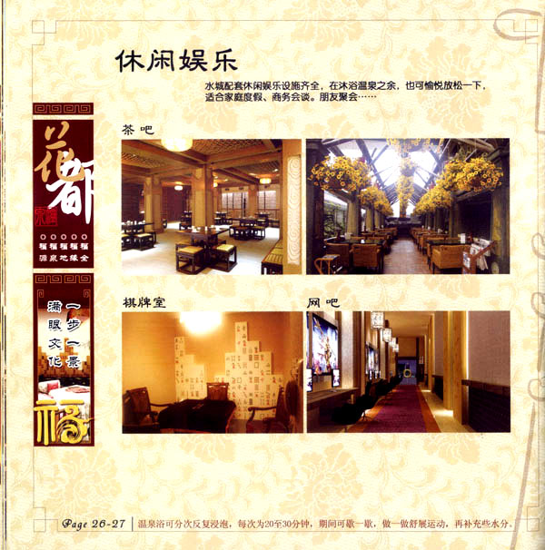花都溫泉水城包括洗浴區(qū)、戲水世界、露天溫泉、自助餐廳、生態(tài)房、別墅區(qū)、紅文化房、VIP區(qū)等多種功能區(qū)域,是集溫泉養(yǎng)生、休閑住宿、演藝會(huì)務(wù)為—體的休閑度假勝地,給賓客帶來(lái)江南小鎮(zhèn)的浪漫水城之旅。