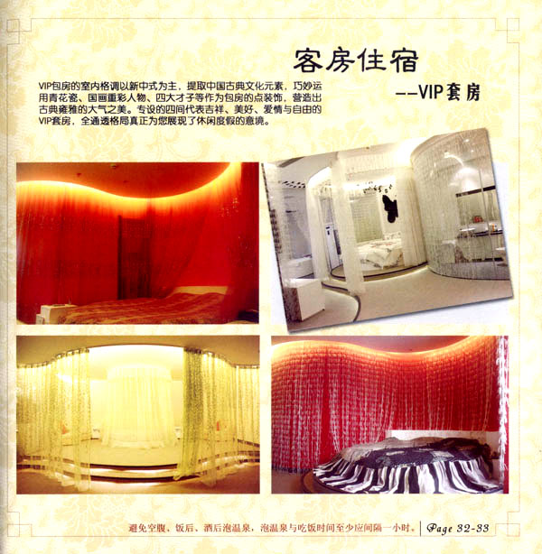 淹城花都溫泉水城孕育天地之精華,悅身、悅?cè)、悅心、悅神。置身其中泉水潺潺,霧氣繚繞、花瓣飄香,恍若仙境!稗渌略谑郑ㄏ銤M衣”,花都溫泉的浪漫與溫潤(rùn)在這里完美展現(xiàn)。 花都溫泉水城包括洗浴區(qū)、戲水世界、露天溫泉、自助餐廳、生態(tài)房、別墅區(qū)、紅文化房、VIP區(qū)等多種功能區(qū)域,是集溫泉養(yǎng)生、休閑住宿、演藝會(huì)務(wù)為—體的休閑度假勝地,給賓客帶來江南小鎮(zhèn)的浪漫水城之旅。 古木新枝畔賓客對(duì)酒當(dāng)歌,溪泉石椅旁把茶品啜。 淹城-三勤生態(tài)酒店,這里是一處綠色生態(tài)的美食家園。此地鬼斧神工.奇水異石,和風(fēng)細(xì)雨林中穿過,引百鳥朝來暮歌;這里集生態(tài)餐飲、演藝、中小型會(huì)務(wù)為一體,將現(xiàn)代裝飾風(fēng)格和古雅拙樸的自然裝修完美整合;這里聚集大江南北名廚,推出精致綠色美昧佳肴。來到這里,賓客可享田園至美之景,品舌尖至鮮之味,實(shí)乃人生一大樂事。