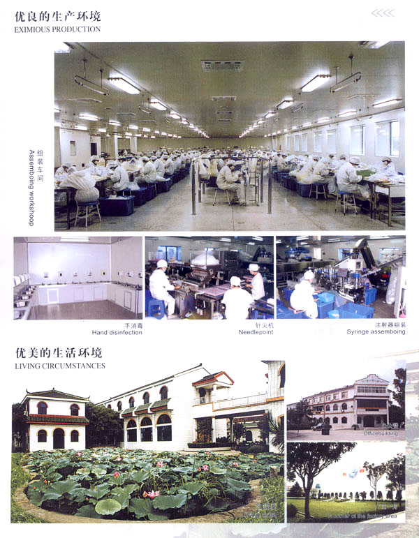 常州悅康醫(yī)療器材有限公司(原常州市鶴壽醫(yī)用器材廠) 是專業(yè)生產(chǎn)一次性使用無菌醫(yī)療器械的股份制企業(yè)。本公司始建于1986年,現(xiàn)公司面積32000平方米,建筑面積為18500平方米。其中十萬級潔凈區(qū)面積為7500平方米,目前擁有固定資產(chǎn)3000余萬元,現(xiàn)有員工380人,主要生產(chǎn)一次性使用輸液(血)器、一次性使用注射器、一次性使用靜脈針、一次性使用注射針及一次性使用高分子醫(yī)療制品,年生產(chǎn)能力超2億套,產(chǎn)品銷售歷年處于供不應(yīng)求的好勢頭,銷售覆蓋全國28個省市、市、自治區(qū)1000多家醫(yī)療單位,受到用戶好評,成為江蘇省生產(chǎn)一次性醫(yī)療用品的重點企業(yè)。 本公司具有自營進(jìn)出口經(jīng)營權(quán),通過ISO9002質(zhì)量管理體系和CE認(rèn)證。我廠將以優(yōu)異的質(zhì)量、合理的價格、及時供貨為各單位提供良好的服務(wù)和方便。