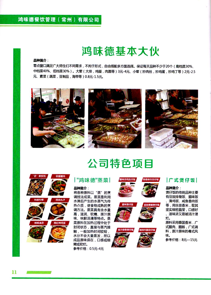 鴻味德餐飲管理(常州)有限公司是一家專門為企業(yè)單位、學(xué)校、醫(yī)院等提供伙食服務(wù)的企業(yè),以飯?zhí)玫某邪、蔬菜、糧油配送為核心業(yè)務(wù),本單位管理規(guī)范化、專業(yè)化,實(shí)現(xiàn)管理嚴(yán)明,有較高的員工素質(zhì),不斷為消費(fèi)者創(chuàng)造更好的生活質(zhì)量。為了維護(hù)自身的品質(zhì)形象,我們已制定了一套完善的經(jīng)營(yíng)方式和管理制度:為健康、綠色生活提供保障!您的滿意是我們的目標(biāo),我們將竭誠(chéng)為您提供更好的品質(zhì)、更優(yōu)惠的價(jià)格、以及更優(yōu)質(zhì)的服務(wù)。