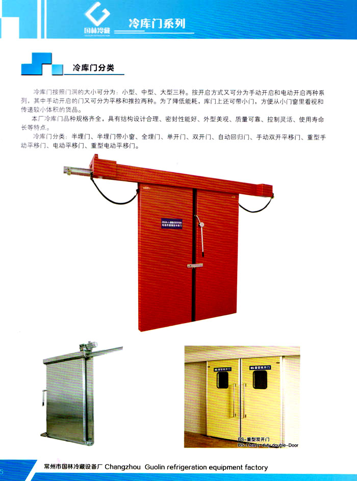常州市國林冷藏設(shè)備廠(原武進(jìn)長虹冷藏設(shè)備廠)成立于1995年,地處江南水鄉(xiāng)中國富饒的“長江三角洲”中心區(qū)域—江蘇常州,滬寧高速、沿江高速、312國道,交通快捷,即刻到達(dá)。 國林冷庫:公司通過了ISO9001:2000質(zhì)量體系認(rèn)證,國林冷庫多次獲得“江蘇省優(yōu)質(zhì)產(chǎn)品”稱號,全國質(zhì)量服務(wù)AAAAA示范單位,并且是中國食品網(wǎng)、阿里巴巴,空調(diào)制冷誠信通會員企業(yè),并與全國多家設(shè)計(jì)院技術(shù)合作,本廠的誠信服務(wù)獲得了廣大客戶的認(rèn)可。 國林冷庫:中國制冷行業(yè)的十大冷庫制造商之一,中國制冷重要工業(yè)生產(chǎn)基地。本公司***生產(chǎn)保溫庫板及冷庫制冷成套設(shè)備,庫板材料涉及不銹鋼、彩鋼板、玻璃鋼板、保溫聚氨脂板。年產(chǎn)量3000多臺,庫板30多萬平方,歡迎新好客戶前來訂購。 國林制冷:公司始終堅(jiān)持:“質(zhì)量為上,追求品質(zhì)”的生產(chǎn)方針;始終信奉:“客戶為先,服務(wù)為本”的經(jīng)營理念。我們愿同廣大的新老客戶在新的世紀(jì)里,共同發(fā)展,利益雙贏,再創(chuàng)輝煌。 常州市國林冷藏設(shè)備廠***生產(chǎn)7.5公分,10公分,12公分,15公分,20公分的聚氨酯冷庫板,面板包括彩鋼板、不銹鋼板、壓花鋁板等各種板材,各種冷庫半埋門及平移動(dòng)門,各種鐵排管和鋁排管,價(jià)格優(yōu)惠,有需要的可以聯(lián)系我金文燁18761183807