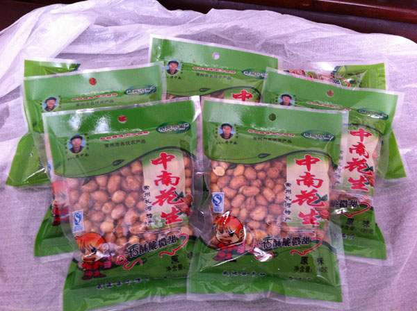 正宗的中南花生為綠色包裝,包裝上有“禮河中南”花生創(chuàng)始人蔣中南先生的頭像以及QS生產(chǎn)許可標(biāo)志,請(qǐng)廣大客戶認(rèn)準(zhǔn)購(gòu)買(mǎi),以防假冒。
