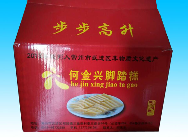 常州鄭陸何金興腳踏糕制作坊從事腳踏糕制作工藝200多年,五代傳承,制作面積300平方米左右,腳踏糕是用黏性大的米或米粉蒸成的糕,是中國農(nóng)歷年的應(yīng)時食品。春節(jié),我國很多地區(qū)都有講究吃年糕。年糕有紅、黃、白三色,象征金銀,年糕又稱“年年糕”,與“年年高”諧音,寓意著人們的工作和生活一年比一年提高。所以前人有詩稱年糕:“年糕寓意稍云深,白色如銀黃色如金。年歲盼高時時利,虔誠默祝望財臨!绷碛姓憬幉ㄊ薪眳^(qū)慈城鎮(zhèn)的水磨年糕也是特別有名。