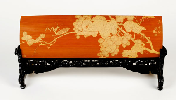 徐敏,一九七四年生于江蘇常州,擅長山水油畫。師從竹刻家范遙青研習竹刻至今有二十余載。其作品受到竹刻權威鑒賞家王世襄認可,并親筆為她題字褒獎。現(xiàn)為常州市非物質文化遺產傳承人。