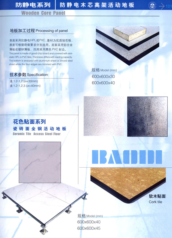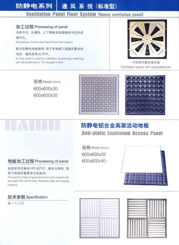 常州市寶進防靜電設備有限公司是各類防靜電產(chǎn)品開發(fā)、設計、制造、安裝服務于一體的企業(yè)。以上海物理學會空間靜電專業(yè)委員會強大的技術力量為后盾。公司主要致力于各類機房、電氣室設計、安裝;各類防靜電干擾處理及用戶特種需求。公司擁有防空間靜電干擾—聲學復合系統(tǒng)、輕質(zhì)全鋼活動地板、高環(huán)保型抗靜電貼面等多項發(fā)明專利,是國內(nèi)該行業(yè)中唯一擁有自主知識產(chǎn)權的企業(yè)。 公司主要產(chǎn)品“寶迪”牌 防靜電高架地板及板材、OA網(wǎng)絡地板。產(chǎn)品廣泛用于電子廠房、金融系統(tǒng)、電力、廣電、軍隊及智能化樓宇。并向多個國家出口。 針對發(fā)泡水泥填充的全鋼高架地板自身重、承載差的缺點,我們開發(fā)了輕質(zhì)全鋼高架地板。在提前地板承載的同時,大幅減輕了地板的自重。 公司一貫嚴格執(zhí)行ISO9001-2000質(zhì)量保證體系,為用戶提供高品質(zhì)的產(chǎn)品及完善的售后服務是公司一貫的宗旨。