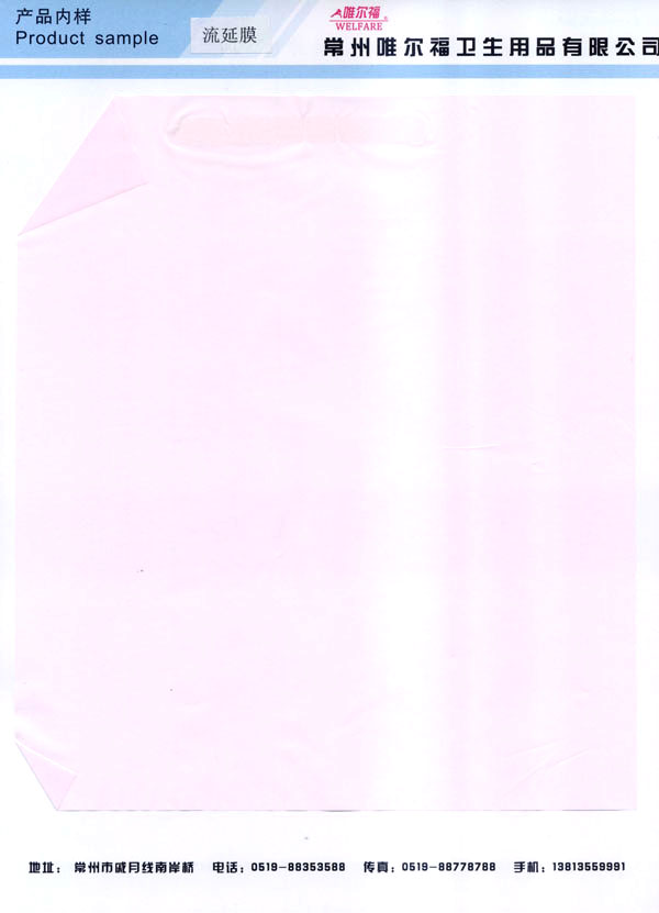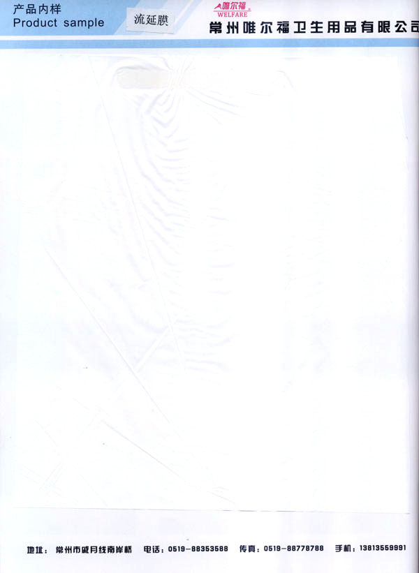 常州唯爾福衛(wèi)生用品有限公司是一家獨(dú)資企業(yè),地處滬寧高速、沿江高速,常州橫山出口交匯處,交通便利、環(huán)境清新。 常州唯爾福衛(wèi)生用品有限公司創(chuàng)建于1998年,公司占地2.5萬平方米,員工165人。 公司現(xiàn)有各類生產(chǎn)線20條。公司現(xiàn)已發(fā)展成為各項(xiàng)管理先進(jìn)、技術(shù)力量雄厚,全年流延膜產(chǎn)量9000噸,華東地區(qū)最具規(guī);牧餮幽どa(chǎn)基地。 公司專業(yè)生產(chǎn)9—80克流延膜,15—80克透氣膜,及各類印刷膜。優(yōu)極柔版印刷,各種復(fù)合膜。廣泛適用于婦女衛(wèi)生用品、嬰兒紙尿褲、成人紙尿褲、成人床墊、寵物墊、醫(yī)用薄膜制品等領(lǐng)域。多年來公司致力于研究和開發(fā)適應(yīng)市場需求的新產(chǎn)品來滿足廣大客戶的需求。