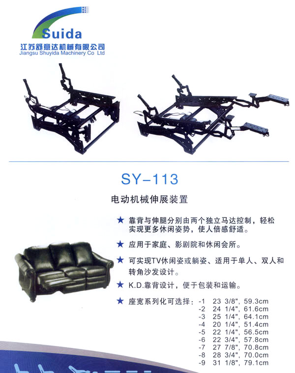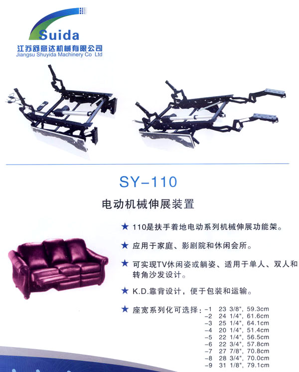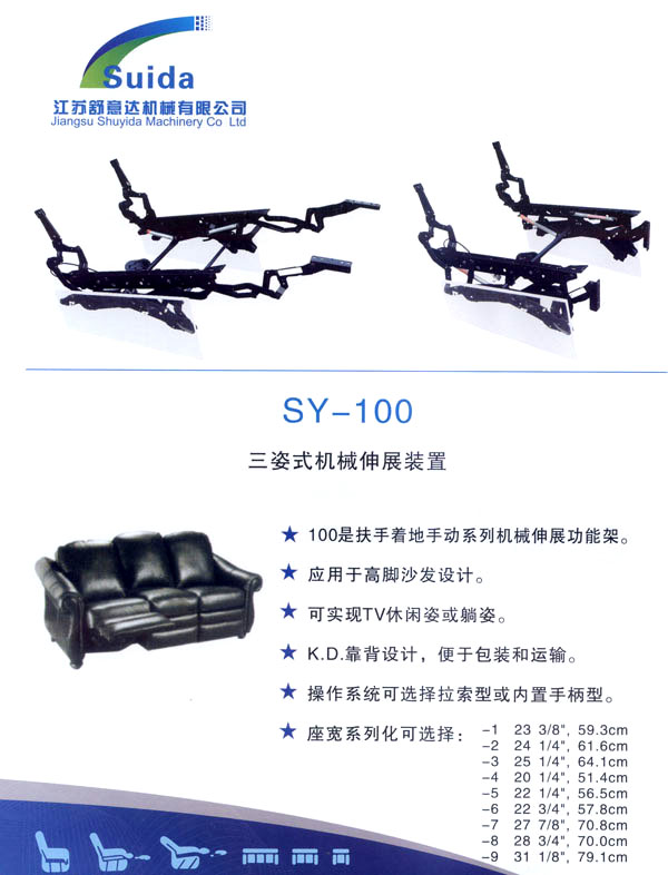江蘇舒意達(dá)機(jī)械有限公司是一家集研發(fā)設(shè)計(jì),生產(chǎn)制造及銷(xiāo)售的專(zhuān)業(yè)家具五金企業(yè)。公司成立于2006年,座落于風(fēng)景秀麗的江南常州,交通運(yùn)輸?shù)锰飒?dú)厚,為海內(nèi)外客商的來(lái)往交流,洽談和供貨提供了諸多便利,公司占地面積28000平方米,生產(chǎn)廠房面積18000平方米,獨(dú)立的辦公樓,擁有良好的工作環(huán)境。 我們的經(jīng)營(yíng)思理念:堅(jiān)持以人為本,科技為先,用先進(jìn)的設(shè)備,好的工藝流程制造一流的產(chǎn)品。 我們的口號(hào):保證以?xún)?yōu)秀的品質(zhì)服務(wù)于客人,我們的目標(biāo):研發(fā)更多舒適的產(chǎn)品,帶來(lái)生活的享受。 公司誠(chéng)邀海內(nèi)外客商前來(lái)指導(dǎo)洽談,攜手共進(jìn),共造雙贏。