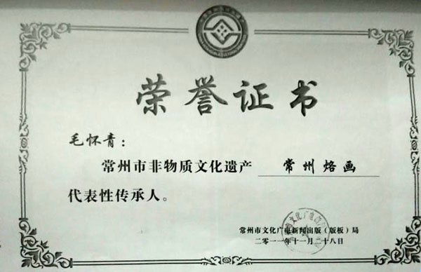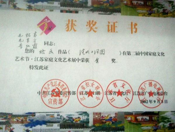 近年來(lái),創(chuàng)作的烙畫(huà)作品分別獲得過(guò)全國(guó)、省市級(jí)的金、銀、銅獎(jiǎng)多次。中央電視臺(tái)曾兩次播放過(guò)本人的烙畫(huà)作品,江蘇電視臺(tái)、常州電視臺(tái)也曾多次播放過(guò)本人的作品與烙畫(huà)藝術(shù)生涯,揚(yáng)子晚報(bào)、常州日?qǐng)?bào)、常州晚報(bào)也曾多次報(bào)導(dǎo)過(guò)本人的烙畫(huà)作品,出版物有三種版本都能查閱到介紹本的烙畫(huà)從藝生涯與藝術(shù)業(yè)績(jī)。