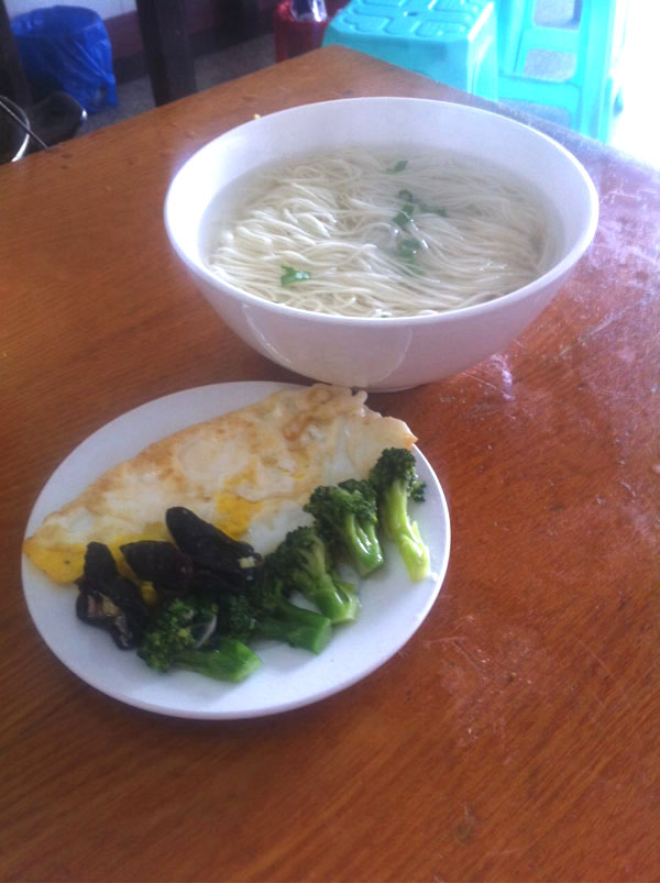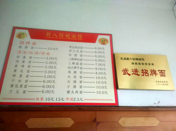 武進(jìn)人愛吃面,已經(jīng)是人盡皆知。而說起武進(jìn)人最愛吃哪種面,估計(jì)十個(gè)中有八個(gè)會(huì)說腸腸面。位于禮嘉鎮(zhèn)上的新八佰碗面館,就是以腸腸面在武進(jìn)面界擁有了眾多粉絲。 比起大部分武進(jìn)的家常面館,新八佰碗面館的門面還是挺大的,寬敞的廳堂里擺放著近10張桌子。中午11點(diǎn)不到,由于還沒到飯點(diǎn),店里的客人并不多。著裝清爽的老板娘顧紅梅正在后面的灶間里忙著炒菜!澳銊e看現(xiàn)在我們店里沒人,再過半小時(shí),人馬上就多起來了。早上9點(diǎn)前,好多人都是站著把面吃完的! 顧紅梅坦言,面館有如此好的生意,著實(shí)有點(diǎn)意外,但也在情理之中。 新八佰碗面館的前身也是一家面館,但是因?yàn)榉N種原因,最終在3年前關(guān)門大吉!捌鋵(shí)面館的市口很不錯(cuò),但我接手的時(shí)候,前任老板跟我說,一天只能做20斤面的生意。”雖然壓力很大,但顧紅梅表示,從一開始她就對面館充滿信心,“我一直覺得只要用心,沒有做不好的事。” 新八佰碗面館的面是老武進(jìn)的做法,一碗面,三種做法,要么紅湯、要么白湯,還有紅湯拌面,翻花樣的是上面的澆頭。每天清晨3點(diǎn)半,顧紅梅就會(huì)準(zhǔn)時(shí)到店里,首先是煮湯底。“我們面館的湯料頭很足,用大骨頭、老母雞、開洋等足足燉夠3小時(shí)!苯又褪亲龈鞣N澆頭。由于一向擅長做菜,因此有很多澆頭都是顧紅梅親自掌勺。新八佰碗面館的澆頭,除了味美,量也是足得讓食客們直呼“老板要虧本了”!熬湍梦溥M(jìn)人最喜歡吃的大肉來說,足足是別人店里的兩倍大。每次我切肉的時(shí)候,我老公總在旁邊念叨,大點(diǎn),再大點(diǎn)!鳖櫦t梅笑著說道。 早上6點(diǎn)不到,面館就會(huì)迎來第一批客人。雖然店里雇了工人,但顧紅梅只要有空,都會(huì)搶著收拾碗筷!案鶕(jù)客人們吃的量,我就知道面合不合他們的口味了。有時(shí)看到客人剩的特別多,我就會(huì)拉著問是不是不好吃。只要客人們提到的意見,我肯定一字不落地記下來,然后在以后的制作過程中一一改進(jìn)。對于很多武進(jìn)人而言, 一碗面,裝載的是小日子、小樂活,所以我必須把面做好吃嘍!鳖櫦t梅的如此用心,不由讓記者豎起了大拇指。 就這樣,一開始的20斤面量,一個(gè)月后就增加到了40斤,而現(xiàn)在最忙的時(shí)候,一天要用掉近100斤面。 說起招牌面,顧紅梅指了指墻上的菜單,“喏,寫在那呢,腸腸面!泵媸羌(xì)面,根根柔中帶勁,湯底濃油赤醬,看似很咸,其實(shí)不然,回味恰到好處。大腸處理得很干凈,腸腔里的油花幾乎都被去除了,糯糯的卻不見肥,再加一塊素雞或荷包蛋,武進(jìn)人喜歡的味道,這一碗面里就齊全了。