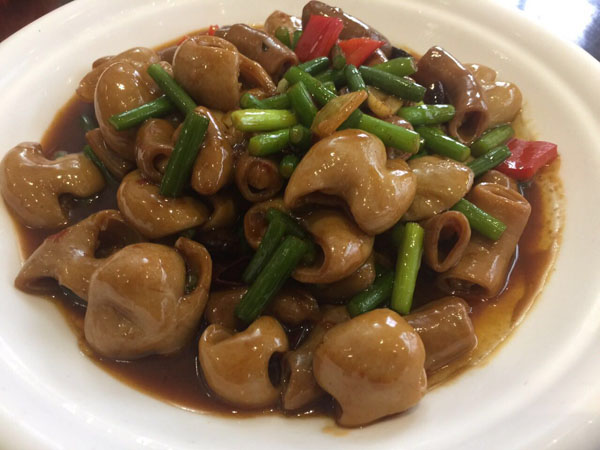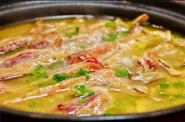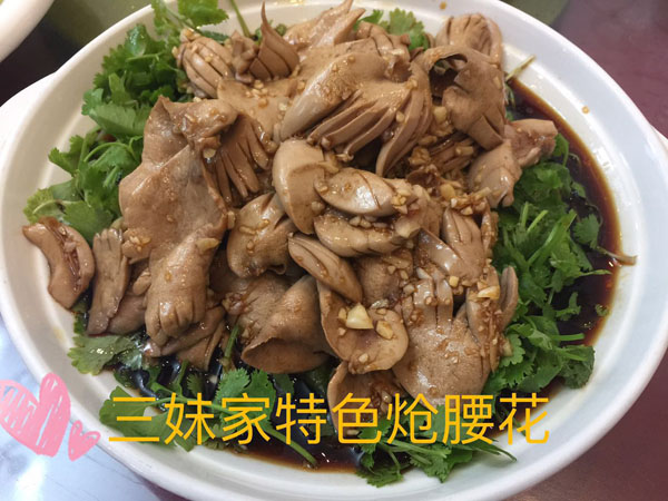 橫林有個地兒叫楊歧村,有句老話叫“上不靠橫林,下不靠洛社”,說的就是那里。 楊歧村過去幾十米就是無錫地界,今天小編推薦的土菜館「三妹農(nóng)家小吃」就在那里。 當(dāng)小編一路七拐八拐,中午11點(diǎn)半到達(dá)那里時(shí),門面雖然很簡陋,但店門口已然停了好多輛車。剛進(jìn)入店門,就發(fā)現(xiàn)這家店人氣好旺,十幾桌基本都坐滿了。(所以說,人不可貌相,餐館也是如此) "三妹,三妹。⒌昀锟腿私袉韭暡唤^于耳,原來老板娘叫楊三妹啊。你們忙,我們先隨便看看。 過大廳到后堂就是冷菜間,里面有白切草雞、鹵豬干、拌馬蘭等十幾種土菜,尤其那草雞濃郁的香味,讓小編肚子叫得咕咕響。 往前是活貨區(qū),各種鮮魚活蝦一格一格區(qū)分養(yǎng)著,再里面是開放式廚房,每個客人都可以看到,選用的放心食材和調(diào)料。  吃貨老板娘,楊三妹,三妹,從小到大一直有個嗜好,就是愛美味,不光喜歡吃,還喜歡鉆研做。2010年,「三妹小吃」開張,因?yàn)楠?dú)具特色,在楊歧這個小村一炮而紅。要說楊三妹最拿手的菜是什么,當(dāng)然是酒糟扣肉。 糟本來就是一種做米酒留下來后,用來吊燒酒的。但是我們常州人很聰明,把糟和肉放在一起,做成一道美味菜,叫酒糟扣肉。 楊三妹的酒糟扣肉之所以有名,得益于母親的悉心傳授。記憶里小辰光,她母親做的扣肉總比別人家的香!冈恪,釀完酒后留下的糟,會與炒熟的新糯米,拌和在一起,陳一年!溉狻,選擇本地養(yǎng)殖的良種豬,沒有臊味。 長大后,她把記憶里的美味延續(xù)了下來。精益求精的她,對扣肉的制作過程要求很嚴(yán)格。別人家制作都是把肉直接切大塊,排碗,熬槽,蒸爛。三妹說,這樣烹制,肉汁的鮮美會流失很多,口感減分不少。她的做法是精選新鮮豬五花,整大塊清蒸,保留肉汁的鮮美,之后再切塊紅燒,排碗,熬糟,澆蓋,再蒸。 三妹酒糟扣肉,出鍋后,色澤紅潤,味道鮮美。既有酒的香味,又有肉的鮮美,而且經(jīng)過蒸煮后,油脂都出來了,爽口不油膩。