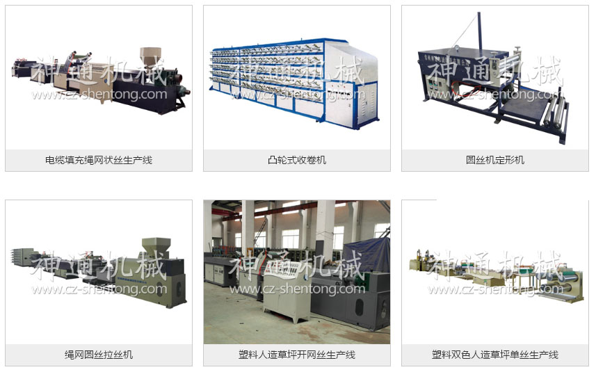 1.雙色人造草坪?jiǎn)谓z、雙色人造草坪曲絲一步法、人造草坪開(kāi)網(wǎng)絲拉絲成套生產(chǎn)線設(shè)備系列,及草坪絲一步法捆綁收卷機(jī)、一步法捻線機(jī)、絡(luò)筒機(jī)。