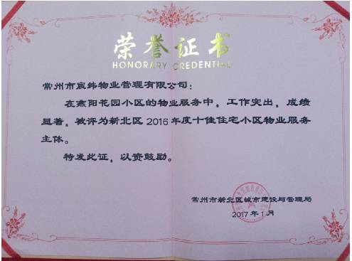 常州市宸緯物業(yè)管理有限公司成立于 2005 年,獲得國家二級(jí)資質(zhì),是常州市物業(yè)管理協(xié)會(huì)理事單位,并通過ISO9001:2008 質(zhì)量管理體系、ISO14001:2004 環(huán)境管理體系、OHSAS18001:2007 職業(yè)健康安全管理體系,三標(biāo)一體認(rèn)證,獲得AAA級(jí)企業(yè)資質(zhì)信用等級(jí)、AAA級(jí)重合同守信用企業(yè)、AAA級(jí)質(zhì)量服務(wù)信譽(yù)企業(yè)、AAA級(jí)誠信經(jīng)營示范單位。 常州市宸緯物業(yè)管理有限公司更是一家適應(yīng)市場(chǎng)需求,積極參與市場(chǎng)經(jīng)濟(jì)競(jìng)爭(zhēng)的高品質(zhì)、高效率、專業(yè)化的物業(yè)管理企業(yè)。公司在物業(yè)管理服務(wù)上導(dǎo)入 ISO9001:2008 質(zhì)量管理體系,建立了一整套適應(yīng)公司發(fā)展的自成體系、行之有效的經(jīng)營管理方法,在市場(chǎng)中堅(jiān)持以品牌發(fā)展戰(zhàn)略為目標(biāo)方針,目前公司所管理的項(xiàng)目共計(jì) 25 個(gè)物業(yè)類型,包括了住宅小區(qū)、商務(wù)辦公樓、學(xué)校、工業(yè)園區(qū)、廠區(qū)等。 憑借在常州物業(yè)管理行業(yè)多年的豐富經(jīng)驗(yàn)和經(jīng)營理念,公司將通過推行多元化的服務(wù)內(nèi)容,及互聯(lián)網(wǎng)+的服務(wù)模式,努力為每一位客戶提供舒適、高效的服務(wù)體驗(yàn)。公司始終遵循“讓客戶滿意是我們永遠(yuǎn)的追求”,不斷探索,勇于創(chuàng)新,隨著經(jīng)營理念和管理經(jīng)驗(yàn)日趨成熟,公司將以市場(chǎng)和客戶的需要為導(dǎo)向,憑借自身的人才、技術(shù)、資本、管理等優(yōu)勢(shì),精誠服務(wù),不斷超越客戶的需求,推進(jìn)物業(yè)管理事業(yè)的發(fā)展。