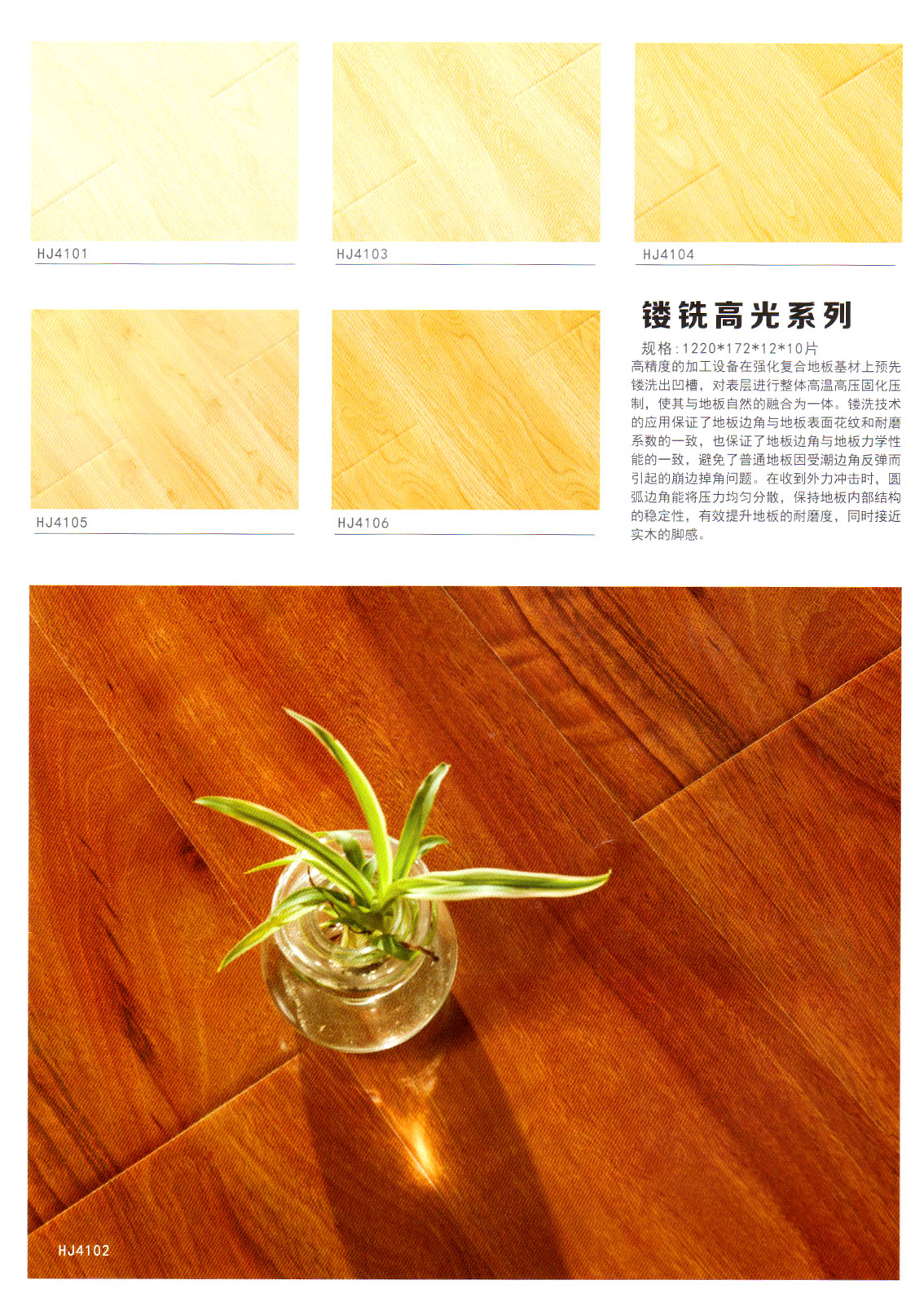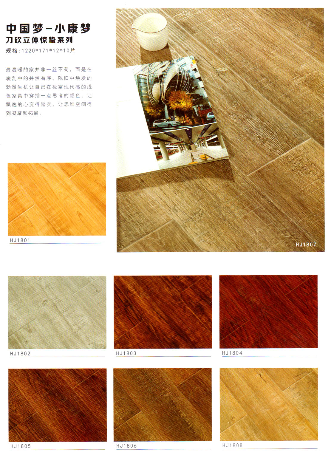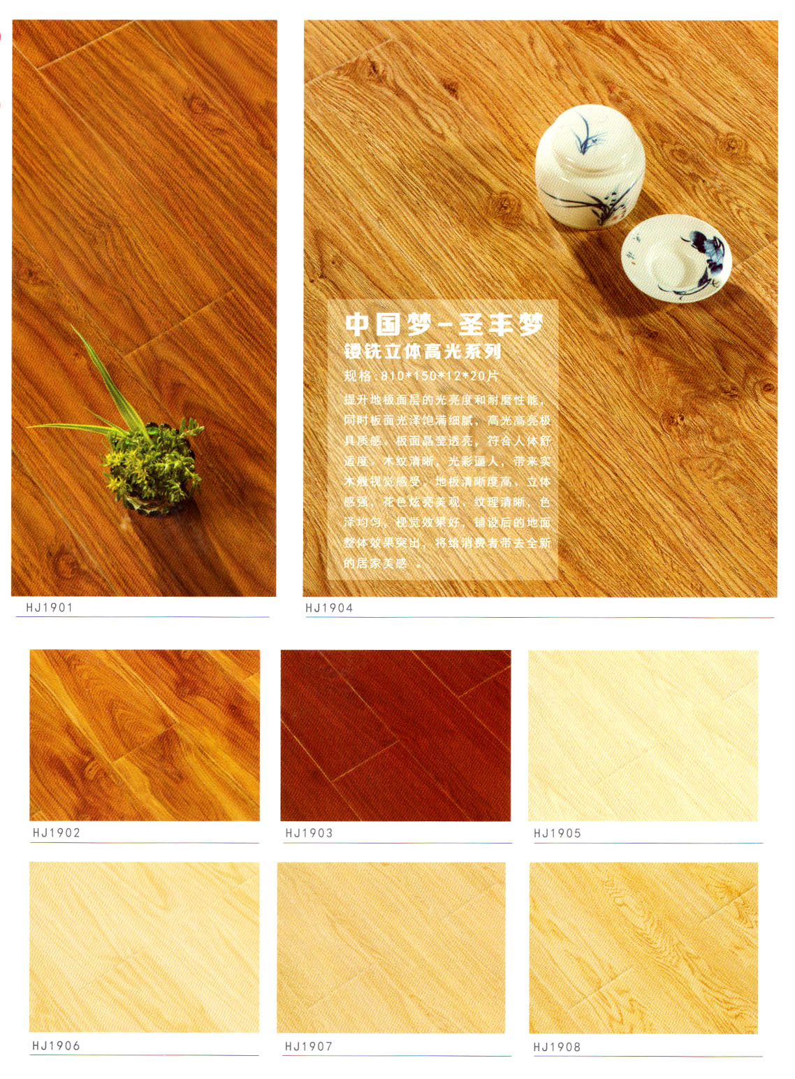 目前我們主要經(jīng)營“惠居”、  “靈盛”牌木質(zhì)強(qiáng)化地板,現(xiàn)在已經(jīng)開發(fā)出水晶面、羽絲面、浮雕面、立體刀砍紋、手抓紋、4v仿實(shí)木、金剛淋漆面、模壓面、橡木真木紋、防水系列等多個(gè)系列產(chǎn)品,涵蓋了市場上所出現(xiàn)的所有產(chǎn)品系列!