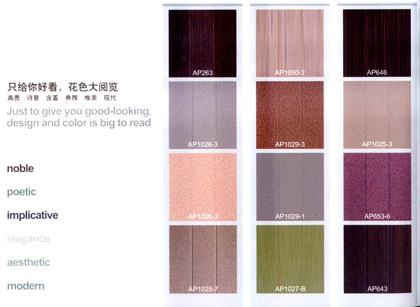常州愛普裝飾材料有限公司位于美麗富饒的江蘇省常州市,是一家專業(yè)從事墻板設計與生產的企業(yè)。年生產墻板300萬平方米。"愛普墻板"是我公司生產的一種新型墻面裝飾材料,產品由人造金剛石耐磨層、三聚氰胺裝飾紙、EO級HDF材料、高檔防潮平衡紙,采用先進的德國生產設備,通過一流的生產工藝--一次性熱壓技術壓貼成型。具有環(huán)保、耐磨、防刮擦、防潮、阻燃、隔音、保溫、抗沖擊、抗污等優(yōu)點。經(jīng)中華人民共和國專利認定為 專利產品(專利號:ZL200820127448.X),為國際首創(chuàng),其知識產權受國家法律保護。 愛普墻板經(jīng)建科院權威部門檢測,其所有物質性能指標均符合國家建材行業(yè)標準,產品遠銷美國、加拿大、澳大利亞、土耳其、俄羅斯、馬來西亞等國家和地區(qū),以其優(yōu)秀的產品與新穎的設計贏得了廣泛贊譽,經(jīng)歷五年的發(fā)展,愛普裝飾材料公司已成為墻板行業(yè)的領軍企業(yè)。 公司以"開拓、競爭、誠信、服務"的企業(yè)精神,"本著質量第一、用戶第一"的原則,依托先進的工藝裝備、雄厚的技術力量,完善的企業(yè)管理制度,竭誠為用戶提供優(yōu)質的產品與良好的服務。