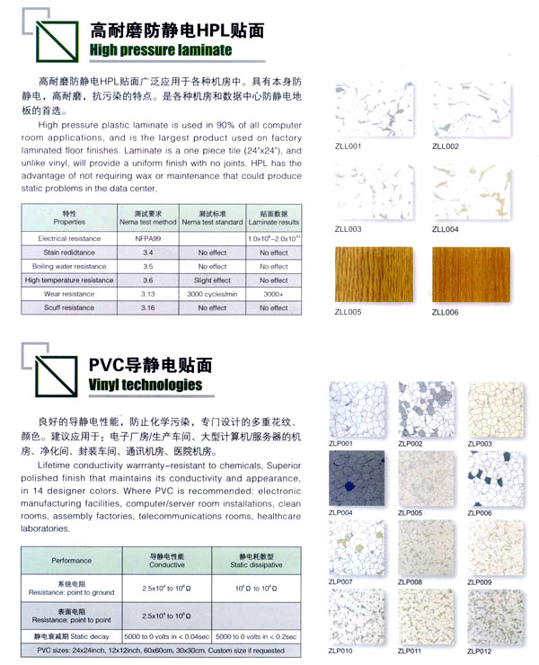 公司生產(chǎn)防靜電鋼質(zhì)、木質(zhì)機(jī)房地板和強(qiáng)化復(fù)合地板及各種電腦操作臺(tái)系列產(chǎn)品。該產(chǎn)品廣泛應(yīng)用于電子機(jī)房、通訊機(jī)房、各類(lèi)實(shí)驗(yàn)室和管線(xiàn)鋪設(shè)集中的防靜電場(chǎng)所以及家庭、大型商場(chǎng)的裝飾。公司技術(shù)力量雄厚、管理科學(xué),已具有設(shè)計(jì)、開(kāi)發(fā)、市場(chǎng)營(yíng)銷(xiāo)及售后服務(wù)的專(zhuān)業(yè)人才隊(duì)伍。