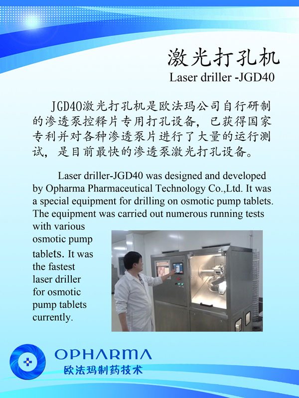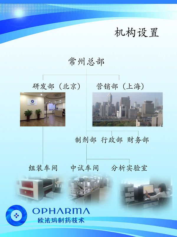 常州歐法瑪制藥技術(shù)有限公司位于長江三角洲黃金腹地——常州。地理位置優(yōu)越、交通便捷,由鐵路、公路、水路、民航形成了一張立體交叉的交通網(wǎng)絡(luò)。 公司創(chuàng)建于2013年,是一家集研發(fā)、生產(chǎn)和銷售為一體,專業(yè)從事高速激光打孔機、滲透泵制劑研發(fā)、生產(chǎn)和銷售。目前公司擁有員工20人,科技研發(fā)和技術(shù)人員占員工總數(shù)80%以上,其中本科以上學(xué)歷占80%以上。 公司始建以來,以前瞻的科學(xué)規(guī)劃,通過自主研發(fā),解決了高速激光打孔機諸多的世界難題,使之達到40片/秒以上且精確打孔的國際領(lǐng)先水平;同時開發(fā)廢片自動識別、剔除功能,以滿足客戶的實際所需。公司與瑞士等國家研究機構(gòu)的科技合作,以高速激光打孔機為基礎(chǔ),建設(shè)了滲透泵制劑研發(fā)和中試生產(chǎn)車間,開發(fā)了多種藥物的滲透泵制劑,形成了從關(guān)鍵設(shè)備研制,新制劑開發(fā)、工藝配套,到批量生產(chǎn)測試的滲透泵制劑開發(fā)全過程技術(shù)團隊和研究設(shè)施。公司瞄準(zhǔn)現(xiàn)代新型釋藥系統(tǒng),吸收國內(nèi)外高端人才,努力開拓控緩釋技術(shù)、靶向給藥技術(shù)及智能給藥技術(shù)。 2013年公司被評為黑馬大賽“創(chuàng)業(yè)組50強”、“領(lǐng)軍人才創(chuàng)業(yè)重點企業(yè)”;2014公司通過了IS09001-2008質(zhì)量管理體系認(rèn)證、CE認(rèn)證、江蘇省質(zhì)量信得過企業(yè)。