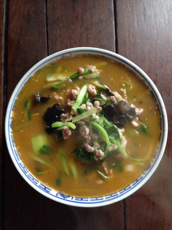 武進區(qū)青城面館經(jīng)營面積280平方米左右,主要特色是現(xiàn)炒肉絲,素菜蓋澆面,面館創(chuàng)始人今年63歲的王蘭珍,她對美食有著高于常人的悟性。她開過饅頭店,開過小飯館,承包過食堂,燒菜、取料樣樣在行,吃過的人常常贊不絕口。 20世紀初,在跟德興面館的老師傅學了做面手藝后,王蘭珍萌生了開一家面館的想法,除了可以養(yǎng)家糊口,最重要的是想讓更多人嘗嘗自己的手藝。于是,她在自己的住處擺起了幾張桌椅,面館就算正式營業(yè)了。因為家住青城橋,王蘭珍干脆取名“青城面館”。 “從早上5點多開始營業(yè),到下午1點多打烊,一天至少要賣掉300多碗面,用掉近160斤面粉。”為何青城面館的面條如此受歡迎,兒媳婦陸偉紅說秘訣在于湯頭和澆頭。湯頭分白湯和紅湯,白湯是由10斤豬骨頭熬制而成,湯色清澈而味道濃郁;紅湯以骨頭湯作底湯,加入茴香、甘草、草果等20多種中草藥,以及糖、醬油等調(diào)味品,鮮而不腥,散發(fā)出陣陣香味。 和一般面館事先燒制好澆頭,放在盆里供客人選擇不同,青城面館的澆頭都是一份份現(xiàn)炒的,特別講究食材的新鮮。就拿暢銷的肉絲蔬菜紅湯面來說,要先起猛火,把肉絲、木耳、蘑菇、青菜等食材放一起煸炒至香,然后澆在撈起的面條上。一碗面出來,現(xiàn)炒的澆頭與面條融合,味道香郁至極。 遙觀人的早晨,醒得有些早。對很多遙觀人來說,美好的一天是從青城面館開始的。那一碗碗現(xiàn)炒的蓋澆面,筋道爽滑、醬香味濃,溫存著他們的胃與記憶,帶來刻進骨子里的家鄉(xiāng)味道。