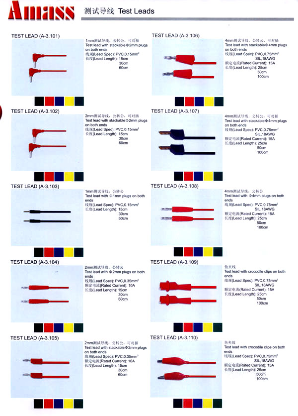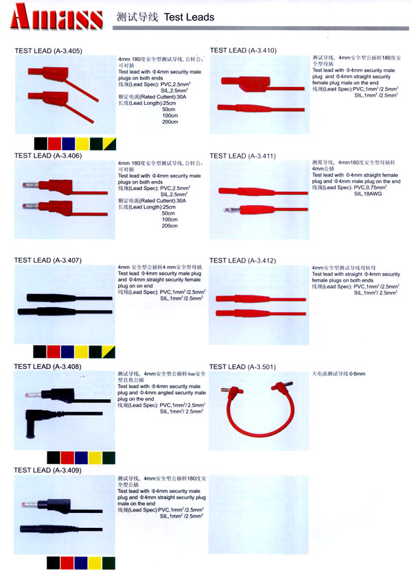 本公司專業(yè)生產(chǎn)各類香蕉插頭,香蕉插座,接線柱,電瓶夾,鱷魚夾,測試導(dǎo)線,測試筆等。產(chǎn)品分2mm/2.5mm/3mm/3.5mm/4mm五大系列,百余種款式, 各種香蕉插廣泛用于儀器、儀表、電力測試、教學(xué)、玩具,視聽設(shè)備、醫(yī)療儀器,保健產(chǎn)品等領(lǐng)域。公司技術(shù)力量雄厚,生產(chǎn)工藝先進(jìn),產(chǎn)品遠(yuǎn)銷港、臺、歐美,并與飛利浦等國際品牌配套。公司本著精益求精的理念,歡迎新老客戶光臨。 我們擁有資深的工程師和豐富的電子產(chǎn)品銷售經(jīng)驗,專業(yè)生產(chǎn)各類電子接插件產(chǎn)品。 香蕉插頭,香蕉插座,電瓶夾,鱷魚夾等品種齊全、 質(zhì)量可靠,致力服務(wù)于通訊、數(shù)據(jù)通信、消費類電子產(chǎn)品、計算機(jī)和計算機(jī)外圍設(shè)備以及工業(yè)應(yīng)用等領(lǐng)域,能給客戶提供全面采購解決方案。 我們秉承穩(wěn)健作風(fēng)、誠實經(jīng)營、合理價格、完善服務(wù)的宗旨,在全體客戶的支持下,公司不斷創(chuàng)新進(jìn)取,業(yè)績蒸蒸日上,已與數(shù)十家電子零件制造商及其分支機(jī)構(gòu)建立密切合作關(guān)系,在國內(nèi)擁有數(shù)百家固定客戶。