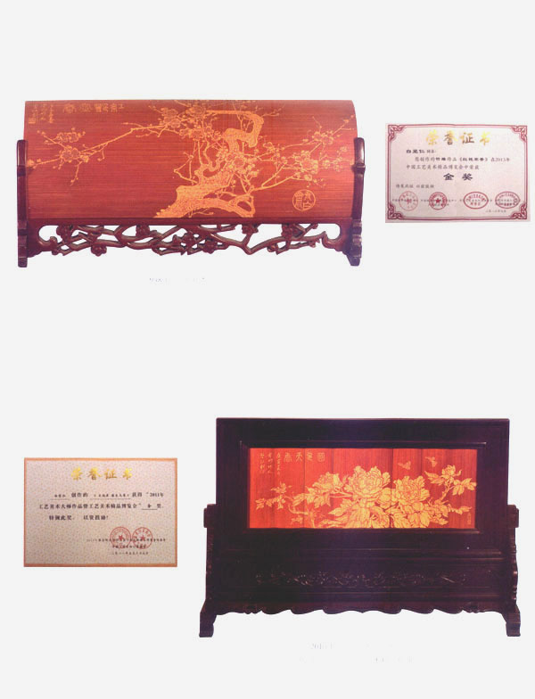 白堅(jiān)仁,1956年生于江蘇常州,國家級非物質(zhì)文化遺產(chǎn)、江蘇省級傳承人、江蘇省名人,高級工藝美術(shù)師,是留青竹刻泰斗白士風(fēng)之子。從小深受先父的熏陶和指點(diǎn),寒來署往、夜以繼日,不僅學(xué)到了先父厚樸豁達(dá)的品格,更深得先父竹刻藝術(shù)的真諦。除繼承刻有先父創(chuàng)立的橫臺(tái)屏、筆筒等作品外,更注重作品的創(chuàng)新。多年來,經(jīng)過艱辛的探索和反復(fù)的實(shí)踐,努力吸取姐妹藝術(shù),成功地采用了多片拼裝,配上紅木框架,制成大型的圖文并貌的作品,如帽籠、大插屏、鏡框掛件、四條屏、甚至中堂。在構(gòu)圖內(nèi)容、技法變化、裝幀形式等方面,都走出了創(chuàng)新之路,使所制作品適應(yīng)了現(xiàn)代人們的審美情趣和生活需求,實(shí)現(xiàn)了多年來要使留青竹刻與書畫作品同樣也能懸掛于廳堂之上的愿望。作品多次在國內(nèi)、國際展覽中獲獎(jiǎng),并獲得了留青竹刻史上的首位二項(xiàng)國家專利擁有者。