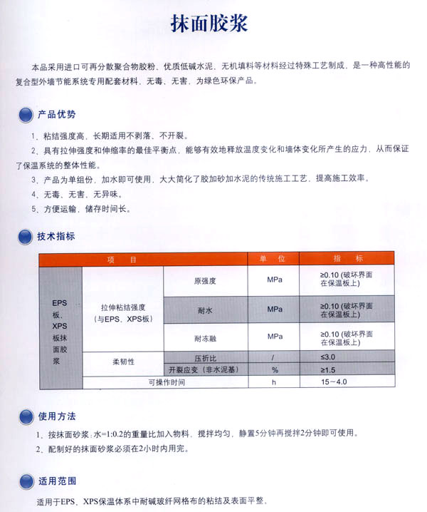 常州市?敌滦徒ú挠邢薰臼且匝兄崎_發(fā)、生產(chǎn)、銷售、施工、技術(shù)服務(wù)為一體的化學(xué)建筑材料的專業(yè)企業(yè),通過與歐洲著 名建筑材料公司和國內(nèi)權(quán)威科研機(jī)構(gòu)合作,并聘請(qǐng)國家級(jí)專家為技術(shù)顧問,開發(fā)出適合我國市場的?礒PS、XPS及聚苯顆粒外墻外保溫節(jié)能系統(tǒng)。 公司的生產(chǎn)線全部采用國內(nèi)先進(jìn)的電腦控制自動(dòng)化設(shè)備,配備了專業(yè)的實(shí)驗(yàn)中心,并且采用進(jìn)口的可再分散乳膠粉為基料,確保?低鈮ν獗毓(jié)能系統(tǒng)具有性能優(yōu)異、安全可靠,綠色環(huán)保、適用性強(qiáng)的高品質(zhì)特點(diǎn)。 公司開發(fā)的\'?低鈮ν獗叵到y(tǒng)\'被列為江蘇省科技成果推廣項(xiàng)目。整個(gè)生產(chǎn)流程依照質(zhì)量體系的要求,實(shí)行嚴(yán)格的監(jiān)控和檢測,為生產(chǎn)優(yōu)質(zhì)產(chǎn)品提供保證。高品質(zhì)的?低鈮ν獗叵到y(tǒng),提供從熱工設(shè)計(jì)、產(chǎn)品開發(fā)、生產(chǎn)銷售及工程施工全程服務(wù)的一體化解決方案。 公司本著“綠色環(huán)保、節(jié)約能源、造福人類”的理念。用我們一流的產(chǎn)品和優(yōu)秀的服務(wù),打造出一個(gè)個(gè)節(jié)能康居示范工程,為人類營造出舒適健康的居住環(huán)境。我們?cè)笧橹袊?jié)能事業(yè)的發(fā)展積極努力,更上一層樓。 公司組建高效的生產(chǎn)經(jīng)營管理模式,設(shè)立專業(yè)技術(shù)服務(wù)機(jī)構(gòu)。配備售后的優(yōu)質(zhì)服務(wù)。實(shí)行原材料、運(yùn)輸、安裝一條龍服務(wù)。經(jīng)本公司施工之后,貴公司可以直接批涂料、裝門窗、貼瓷磚,保證絕無任何質(zhì)量問題。