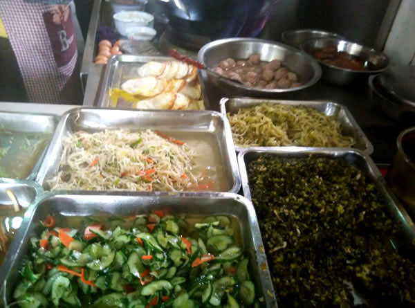 魁元面館,橫山橋江南路,沿街的店鋪。老板娘徐文霞,從公婆手里接過這個店面已有20多年。最具特色的菜品是肉圓跟大排。每天凌晨3點就要起來做準(zhǔn)備,菜都是現(xiàn)燒現(xiàn)賣。 特色小菜: 肉圓:有人特意遠(yuǎn)道而來打包走 大排面:每天能賣出100來塊大排 大腸 雞蛋:每天煎的雞蛋就差不多300來個 小餛飩、大餛飩 限時供應(yīng): 咸鴨蛋、肉粽、蛋黃粽:每天都要包,放爐子燒,在端午前后供應(yīng),很好吃。每天都有人打包幾個咸鴨蛋或者粽子拿回家,送人 油酥餅(圖3-4)、糍團(tuán)餅(圖5-6)、韭菜餅(圖7-8) 油酥餅每天晚上做,涼了更好吃,更酥更脆,里面都是很香的黑芝麻;糍團(tuán)餅,每天中午擺攤熱了煎鍋開始煎,糯米做成,用菜籽油煎至金黃,餡兒是黑芝麻瓜子仁;韭菜餅是最受歡迎的,每天都有好多人排隊來買。供應(yīng)時間:每年的4月份到11月份 下午1點到5點半。