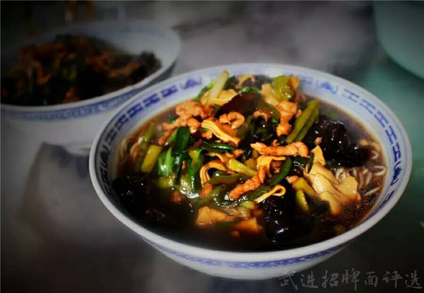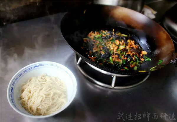 武進(jìn)區(qū)青城面館經(jīng)營(yíng)面積280平方米左右,主要特色是現(xiàn)炒肉絲,素菜蓋澆面,面館創(chuàng)始人今年63歲的王蘭珍,她對(duì)美食有著高于常人的悟性。她開(kāi)過(guò)饅頭店,開(kāi)過(guò)小飯館,承包過(guò)食堂,燒菜、取料樣樣在行,吃過(guò)的人常常贊不絕口。 20世紀(jì)初,在跟德興面館的老師傅學(xué)了做面手藝后,王蘭珍萌生了開(kāi)一家面館的想法,除了可以養(yǎng)家糊口,最重要的是想讓更多人嘗嘗自己的手藝。于是,她在自己的住處擺起了幾張桌椅,面館就算正式營(yíng)業(yè)了。因?yàn)榧易∏喑菢,王蘭珍干脆取名“青城面館”。 “從早上5點(diǎn)多開(kāi)始營(yíng)業(yè),到下午1點(diǎn)多打烊,一天至少要賣(mài)掉300多碗面,用掉近160斤面粉!睘楹吻喑敲骛^的面條如此受歡迎,兒媳婦陸偉紅說(shuō)秘訣在于湯頭和澆頭。湯頭分白湯和紅湯,白湯是由10斤豬骨頭熬制而成,湯色清澈而味道濃郁;紅湯以骨頭湯作底湯,加入茴香、甘草、草果等20多種中草藥,以及糖、醬油等調(diào)味品,鮮而不腥,散發(fā)出陣陣香味。 和一般面館事先燒制好澆頭,放在盆里供客人選擇不同,青城面館的澆頭都是一份份現(xiàn)炒的,特別講究食材的新鮮。就拿暢銷(xiāo)的肉絲蔬菜紅湯面來(lái)說(shuō),要先起猛火,把肉絲、木耳、蘑菇、青菜等食材放一起煸炒至香,然后澆在撈起的面條上。一碗面出來(lái),現(xiàn)炒的澆頭與面條融合,味道香郁至極。 遙觀人的早晨,醒得有些早。對(duì)很多遙觀人來(lái)說(shuō),美好的一天是從青城面館開(kāi)始的。那一碗碗現(xiàn)炒的蓋澆面,筋道爽滑、醬香味濃,溫存著他們的胃與記憶,帶來(lái)刻進(jìn)骨子里的家鄉(xiāng)味道。