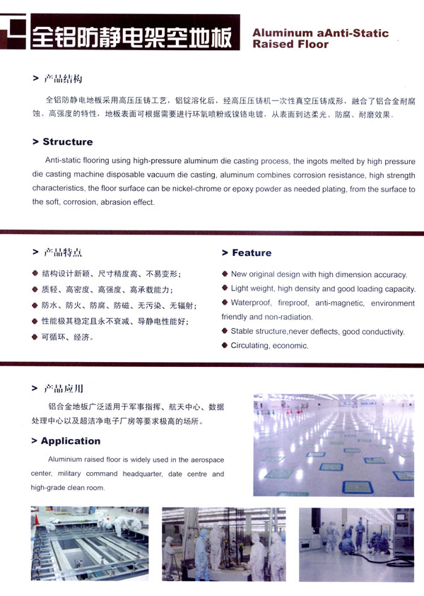 常州市蘇杰機(jī)房地板有限公司是高架地板專(zhuān)業(yè)制造商,專(zhuān)業(yè)從事防靜電地板、OA網(wǎng)絡(luò)地板等各種系列高架地板的研發(fā)、制造和銷(xiāo)售,并提供各種機(jī)房地面和智能化辦公區(qū)地面的整體解決方案。 公司廠區(qū)面積30000平方米,擁有全鋼地板生產(chǎn)線兩條,木基、硫酸鈣基地板生產(chǎn)線各一條,年綜合產(chǎn)能100萬(wàn)平方米。生產(chǎn)蘇杰牌防靜電地板系列和蘇杰牌網(wǎng)絡(luò)地板系列,主要產(chǎn)品有全鋼防靜電架空地板、全鋼OA網(wǎng)絡(luò)地板、瓷磚貼面防靜電地板、硫酸鈣防靜電地板、木基防靜電地板、鋁合金防靜電地板、防靜電通風(fēng)地板等。 蘇杰人秉承“科技先導(dǎo)、市場(chǎng)為本、持續(xù)發(fā)展”的企業(yè)發(fā)展觀,堅(jiān)持“以先進(jìn)技術(shù)裝備為基礎(chǔ),以現(xiàn)代化管理為依托,以專(zhuān)業(yè)化服務(wù)為保障”的宗旨,使公司不斷發(fā)展壯大成為現(xiàn)代化的企業(yè)。 蘇杰人堅(jiān)持“嚴(yán)謹(jǐn)思考、嚴(yán)密操作、嚴(yán)格檢查、嚴(yán)肅驗(yàn)證”的品質(zhì)理念和“以客戶(hù)為中心”的服務(wù)理念,始終致力于產(chǎn)品的技術(shù)創(chuàng)新和質(zhì)量創(chuàng)優(yōu),為用戶(hù)提供優(yōu)質(zhì)的產(chǎn)品、合理的價(jià)格和貼心的服務(wù)。 常州市蘇杰機(jī)房地板有限公司將不斷開(kāi)發(fā)和制造一流的產(chǎn)品,吸引和培養(yǎng)一流的人才,提供和完善一流的服務(wù),樹(shù)立和保持一流的形象,與時(shí)俱進(jìn),共謀發(fā)展。