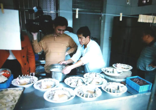 張萬成羊莊一家綜合性的公司,下設酒店,羊產品加工廠,屠宰廠,山羊養(yǎng)殖場。 酒店位于常州西夏墅浦河村,酒店羊宴規(guī)模占地30畝,酒店主要經營特色全羊宴。 一個祖?zhèn)鞯臍⒀虼髴,傳到張萬成,已是第六代了。張家的羊肉,素來以肉質鮮美著稱,張萬成羊莊的主人張建龍是第六代傳人,張家的羊肉素來以肉質鮮美著稱,從常州新北區(qū)沿黃河西路往機場方向直行至羅溪右轉,穿過滬寧高速高架橋后不遠處左拐沿翠屏湖路直走便能看到張萬成羊莊,酒店上下共有三層,2000多平方米經營面積,能同時接待近30桌客人的規(guī)模。有自己的羊圈和屠宰場,每天殺20多只,菜式近100道。光是原料,就從原來羊身上的幾個主要部位,增加到除了羊牙齒以外的一只整羊全部可以入菜。烹制方式,更是在本土單一的燒、炒、煮基礎上,借鑒了東北、廣東、四川等地的烹羊特色,增加了蒸、涮、烤、煎、炸等多種方式。 注重原汁原味的冷菜 白切羊肉:精選羊頸部的活肉精制而成,肥瘦適中,絲毫沒有一般羊肉的膻味,沾少許張萬成羊莊秘制的醬料,口感非常好。 美味羊舌:張家的羊舌感覺是用特殊的醬料腌制過的,咸中略有甜味,口感鮮嫩卻肥而不膩,味道很香。 除了白切羊肉和羊舌以外還有許多冷菜品種,如羊肚、羊心、羊耳朵等。。 火候控制精準的炒菜 炒羊肝:地道的農家風味,與大蒜葉同炒,蒜香濃郁,羊肝鮮嫩,這羊肝可是火候菜,羊肝鮮嫩與否不但取決于廚師對火候的掌握,還在于上桌放置時間的長短,所以羊肝上桌后要盡快食用,看羊肝是否鮮嫩,只需用筷子挑起并輕輕抖動,有彈性者為佳。 美味羊寶:以韭黃、鮑味菇爆炒的羊寶,說是滋補壯陽的一道金貴菜,配料講究的燒菜系列 宮廷燴羊肚:較為金貴的菜品,配菜貴于主料,是以名貴的素鮑和新鮮的筍絲與羊肚同煮,口感濃郁,營養(yǎng)豐富。 海參白燒羊肉:將取自7個月大羔羊身上的帶皮腿肉與海參一同煨煮,菜肴美容滋補,兩種鮮味互相補益達到完美交融狀態(tài),口感甚佳。 魚羊鮮:新鮮的青魚配上羊肉,既有本地羊肉的肥嫩,又有魚肉的鮮香,鮮!鮮!古代人造字就是有道理!”店里可以根據客人的需要配以魚回魚、鯰魚、鱖魚等。 特色的羊宴點心 羊肉餛飩:羊莊老板自創(chuàng)的羊宴點心,看似普通的油燜跑蛋卻另有乾坤,將蛋掀開便能看見藏于其中的羊肉菜餡餛飩,菜和肉都是自家新鮮的原料,很好吃。 手工搟面:不知道是因為面是真正用手工搟制還是因為加入了鮮味十足的羊湯,總之味道非常好,面勁道,湯也鮮美! 張萬成羊莊的羊湯也是遠近聞名,因為是祖?zhèn)鞯氖炙,做出來的羊湯不腥不膻,香醇不膩,味道十分鮮美,加入粉絲或者面條更是難得的美味。