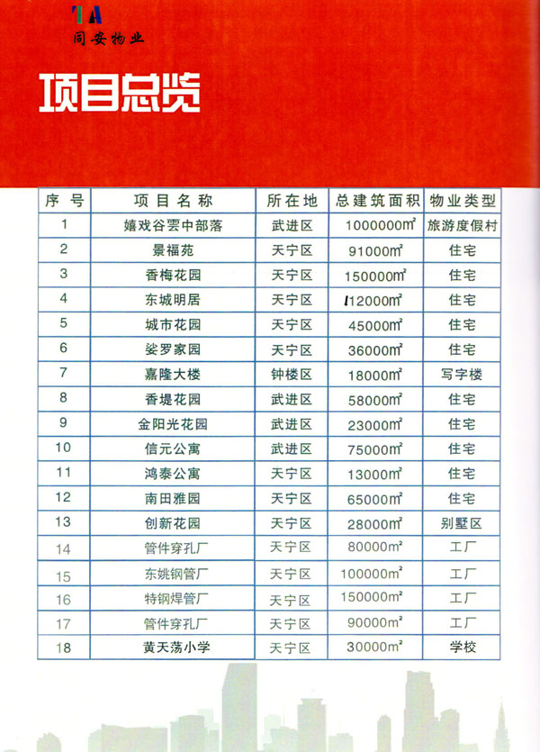 常州市同安物業(yè)管理有限公司注冊1999年,發(fā)展至今已有多年歷史,本公司坐落于美麗的龍城常州,秉承“融聚無限未來”的核心理念,融專業(yè)認(rèn)才,匯優(yōu)質(zhì)資源以”專心,細(xì)心,耐心”的服務(wù)態(tài)度,為客戶打造“安心,順心,稱心”的服務(wù)感受。 公司始終以“打造中國最值得信賴和最值得尊重的物業(yè)管理服務(wù)集成商”為愿景自我鞭策,不斷前行。同安物業(yè)以客戶滿意為終極目標(biāo),不斷加強(qiáng)”崗位資格認(rèn)證能力,人才招聘與職業(yè)化培訓(xùn)能力,產(chǎn)品策劃與管理設(shè)計能力,品質(zhì)監(jiān)督與管控能力,技術(shù)更新與運(yùn)營優(yōu)化力“五大專業(yè)能力的培養(yǎng)和提升,實(shí)現(xiàn)“精品化管理,專業(yè)化服務(wù)”。 公司發(fā)展至今,員工總數(shù)近千余人,大專以上學(xué)歷200多人,中高級技術(shù)人員160人,維修人員140人,物業(yè)管理師80名,公司接管面積達(dá)3100000多平方米,設(shè)涉及住宅小區(qū),別墅,大型游樂場,公園,醫(yī)院,廠區(qū),商業(yè)等。公司的工作管理逐步導(dǎo)入ISO9001質(zhì)量體系和ISO4001環(huán)境管理體系和GB/T28001職業(yè)健康安全管理體系,嚴(yán)格按照質(zhì)量體系的標(biāo)準(zhǔn)執(zhí)行。