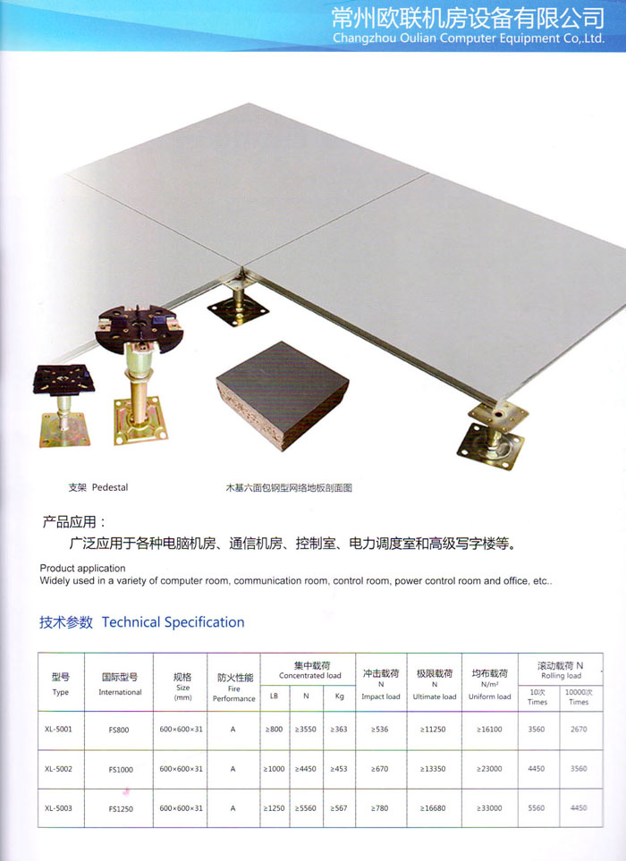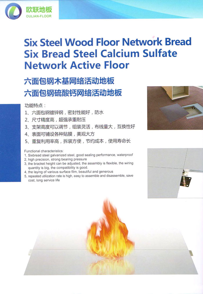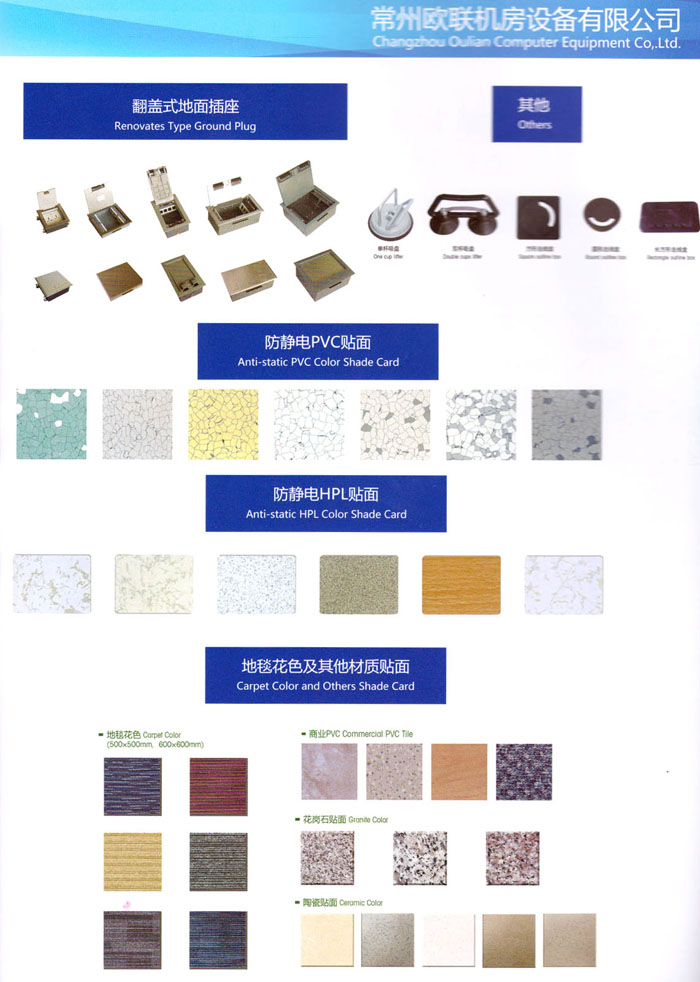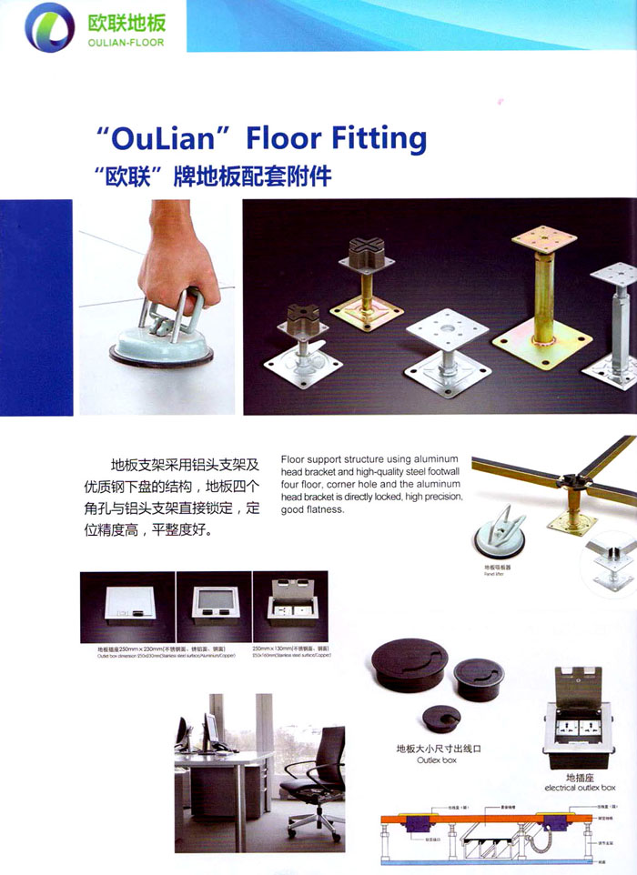 防靜電高架活動地板、全鋼地板、陶瓷地板是計算機行業(yè)發(fā)展起來的新型鋪地材料,隔離了潮氣、靜電灰塵,最重要的是解決了綜合布線問題,無需預(yù)埋管線,可隨時拆卸、搬移,保證了資訊設(shè)備完整的優(yōu)點,適應(yīng)了智能化樓宇中信息自動化技術(shù)對所處環(huán)境的特定要求,避免了廣大客戶的雙重投資,使現(xiàn)代化辦公程度更加高效,辦公場所更加舒適。 “歐聯(lián)”系列全鋼地板,符合國家安全要求,種類完備多樣,其中防靜電陶瓷地板、硫酸鈣地板等除具有普通瓷質(zhì)的裝飾和實用性外,其耐磨、防水、防火功能優(yōu)于其它同類產(chǎn)品,防靜電系列地板,能切合不同客戶的要求,其靈活的配置,深受客戶歡迎,不同材質(zhì)的地板結(jié)構(gòu)使設(shè)計師的設(shè)計空間比傳統(tǒng)的更加廣闊自由和善變。 公司大力發(fā)展國內(nèi)外銷售業(yè)務(wù),多次中標國內(nèi)重點工程 ,例:哈爾濱醫(yī)科大學、山東大學、上海普通機場等。 公司將一如既往開發(fā)和制造一流的產(chǎn)品,愿與廣大有識之士合作發(fā)展,共創(chuàng)美好未來。