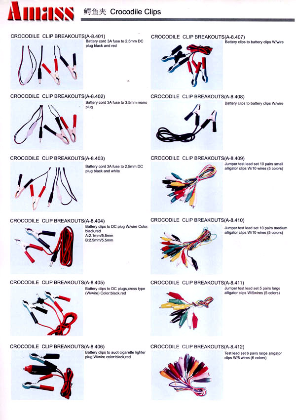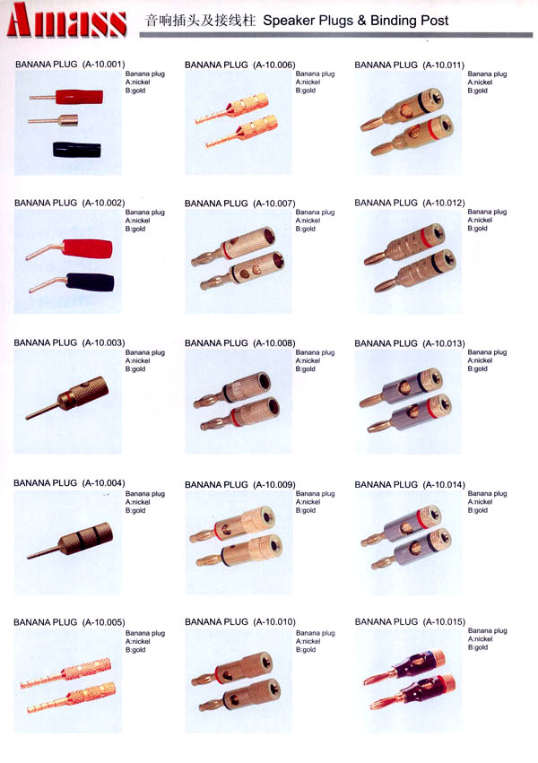 本公司專業(yè)生產(chǎn)各類香蕉插頭,香蕉插座,接線柱,電瓶夾,鱷魚夾,測(cè)試導(dǎo)線,測(cè)試筆等。產(chǎn)品分2mm/2.5mm/3mm/3.5mm/4mm五大系列,百余種款式, 各種香蕉插廣泛用于儀器、儀表、電力測(cè)試、教學(xué)、玩具,視聽設(shè)備、醫(yī)療儀器,保健產(chǎn)品等領(lǐng)域。公司技術(shù)力量雄厚,生產(chǎn)工藝先進(jìn),產(chǎn)品遠(yuǎn)銷港、臺(tái)、歐美,并與飛利浦等國(guó)際品牌配套。公司本著精益求精的理念,歡迎新老客戶光臨。