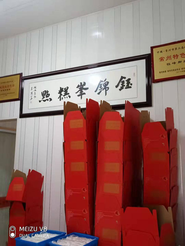 腳踏糕本名“年糕”,按常州周邊地區(qū)的風(fēng)俗習(xí)慣,在春季前夕,各家各戶都要蒸年糕,吃年糕!案狻敝C音“高”,過(guò)年吃年糕被賜予“年年高”,一年高一年,鋒吉祥之意,表達(dá)這人們對(duì)未來(lái)美好生活的憧憬和良好的祝愿。今天小編要帶大家的就是一家至今保持著傳統(tǒng)手工制作的鈺鋒糕點(diǎn)坊。   鈺鋒糕點(diǎn)坊位于常州鄭陸鎮(zhèn)三皇廟范家莊,一個(gè)比較偏僻的村莊,雖然這家作坊不大,但香糯絲滑,軟糯適中,韌勁十足的腳踏糕吸引了無(wú)數(shù)的食客。制作一條腳踏糕要從淘米,浸泡,碾粉,鋪粉,一層一層的鋪下去,需要無(wú)數(shù)道制作工序,這些都是店主孫煥公公老周,憑著幾十年的經(jīng)驗(yàn),加上店主孫煥從不馬虎的決心!   這“腳踏”也并非赤腳上陣,而是把蒸好的糕倒入早以準(zhǔn)備好的框子里,用布包裹好,上面再用薄膜包好,再蓋上布,再換上專門(mén)腳踏的布鞋,踩的時(shí)候要?jiǎng)蚍Q,左右腳要配合好,不然糕會(huì)高高低低,不平整,最后再拿蠟燭線拆成一條小長(zhǎng)條,再拿帶包裝好,如此又香又糯的腳踏糕就大功告成了。   店主孫煥為了讓更多的人認(rèn)識(shí)和了解常州腳踏糕的傳統(tǒng)文化和美食,她在傳統(tǒng)工藝中增加了適合現(xiàn)代文化的多種口味,她在糕里加入南瓜,紫薯,老紅糖,大麥汁,血糯米,核桃,葡萄干,紅棗等食材,做出五顏六色,純天然的口味,深受食客們的喜愛(ài),不管是送人還是自己吃都非常新穎。